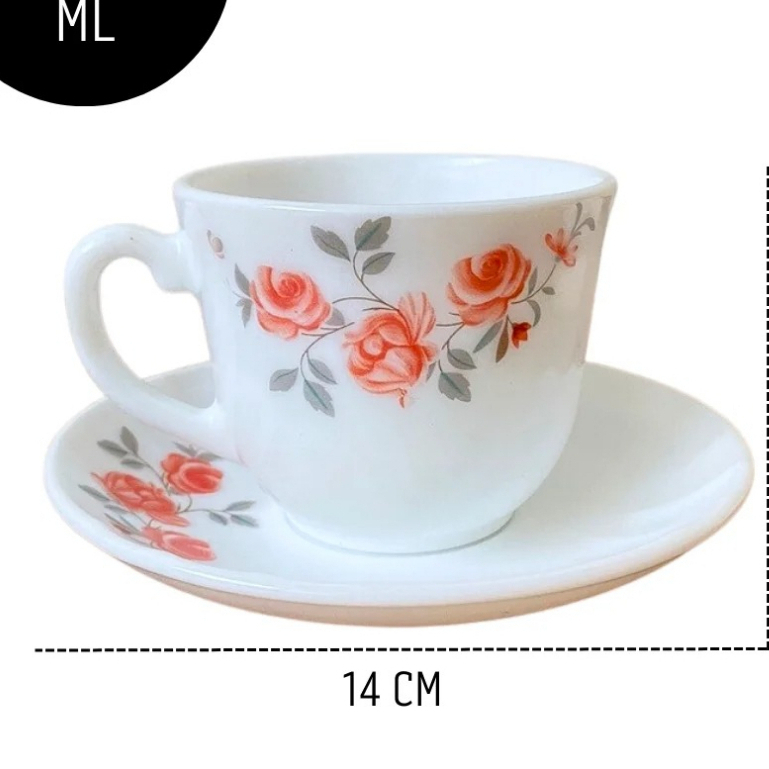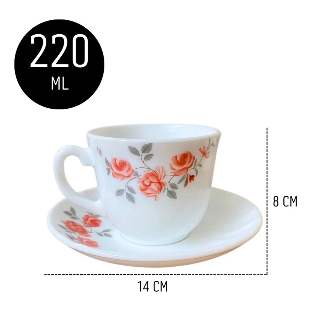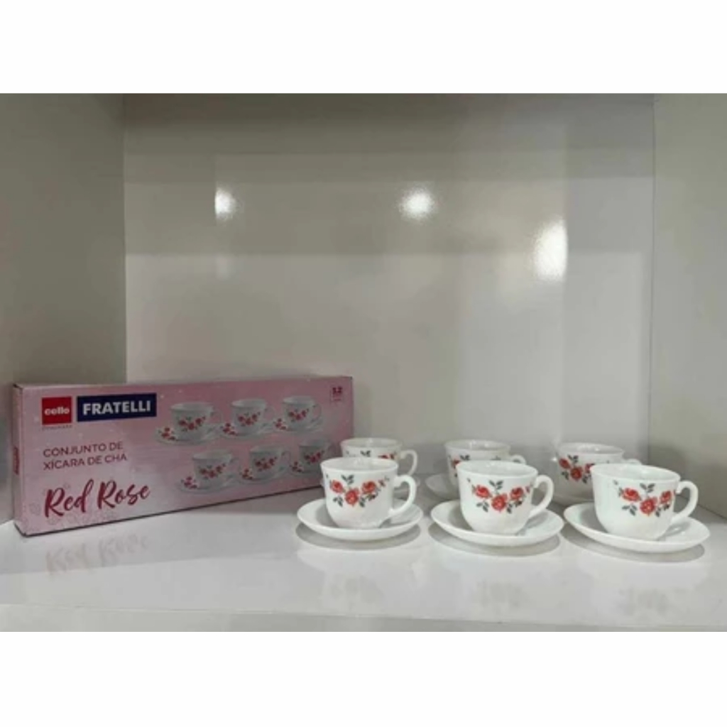 Jogo 6 Xicaras com Pires Porcelana Fratelli Decorado 220ml Red Rose Sofisticado