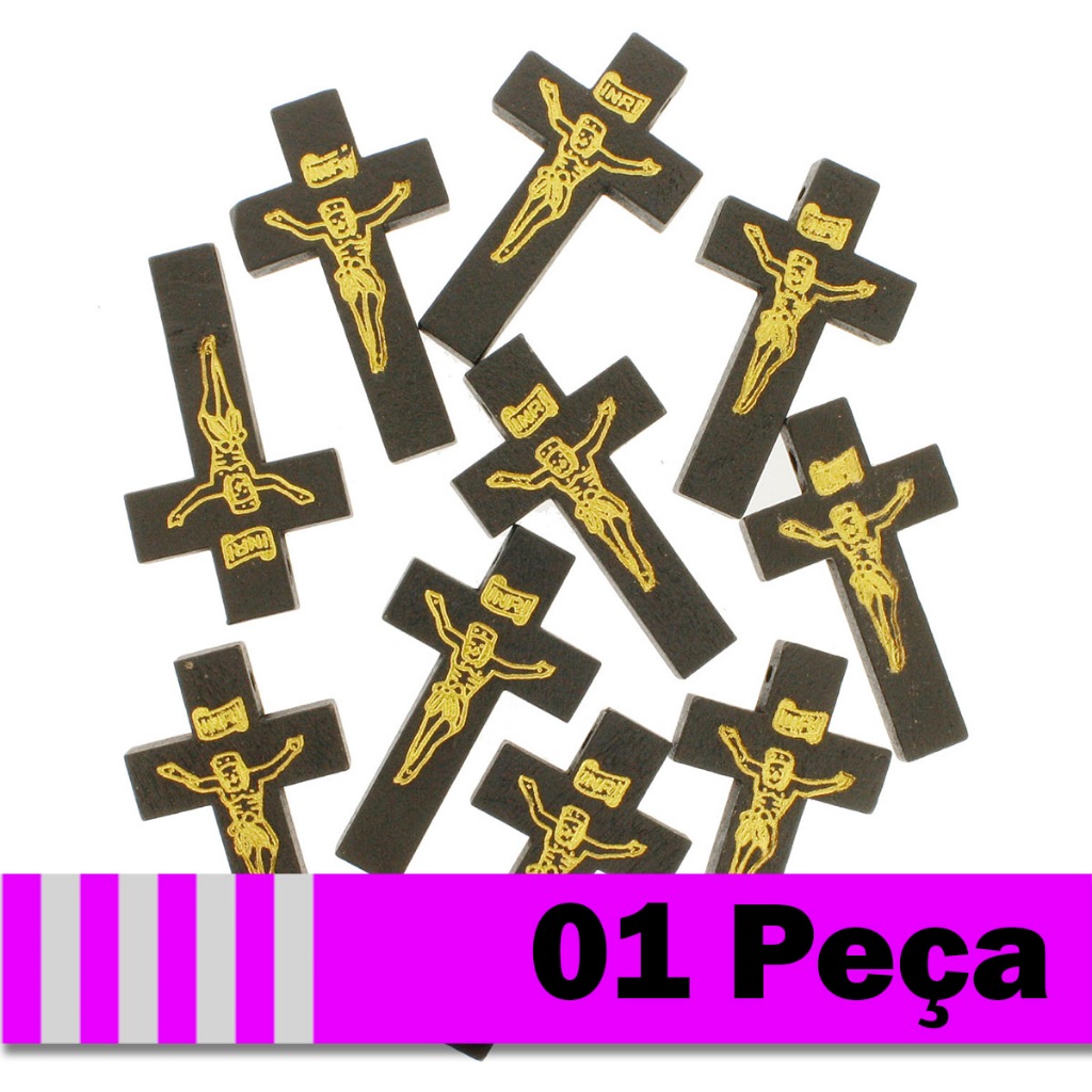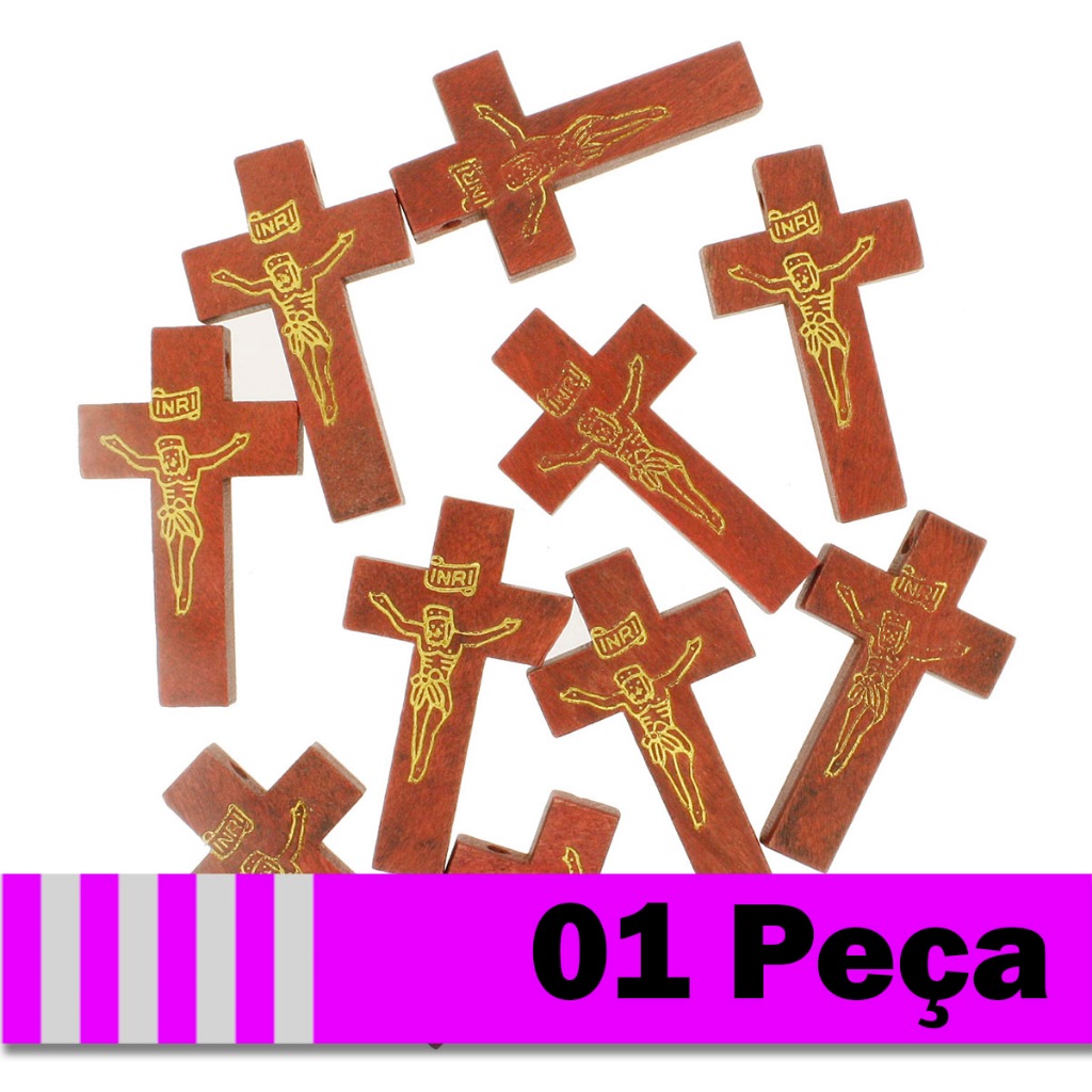 Pingente Crucifixo de Madeira - Escolha Cor e Tamanho