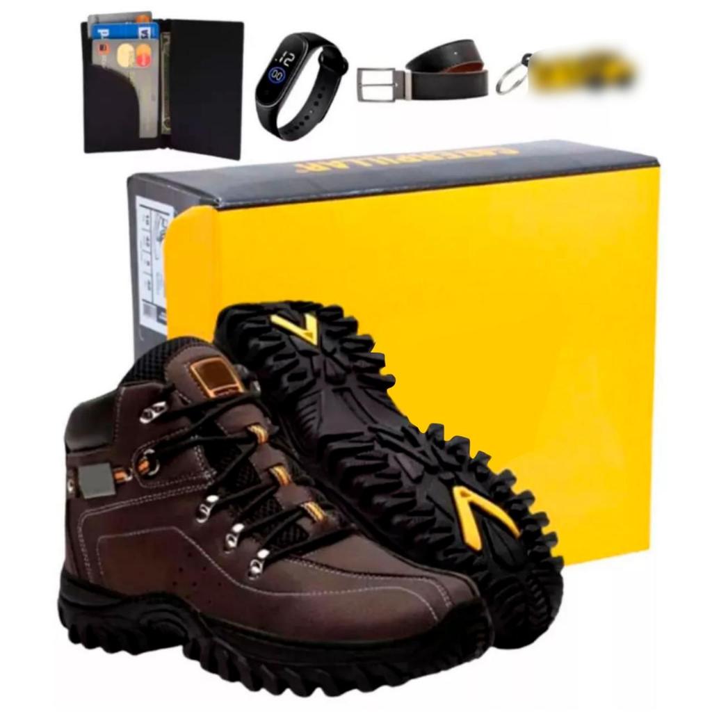 Botina Bota Masculina Adventure Macio Com Solado Costurado Impermeável + Cinto Carteira Relogio e Chaveiro