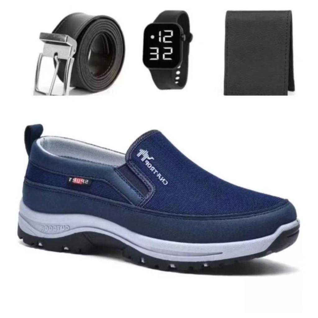 Sapatilha Mocassim Casual Estilosa de Trilha Adventure Impermeável com Solado Ortopedico + Relogio Cinto e Carteira