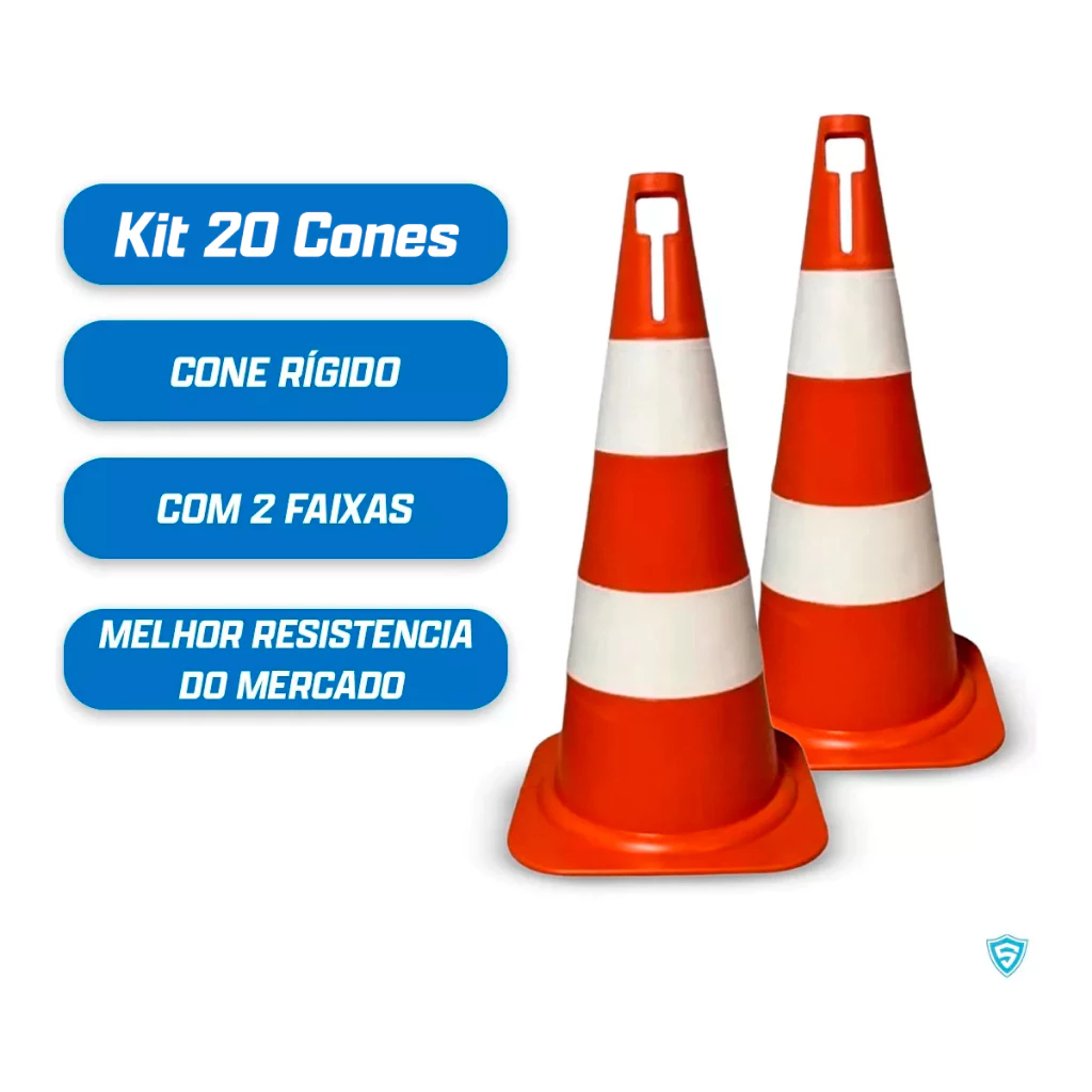 20 Cones Sinalização Segurança Pvc 50cm Estacionamento Demarcação