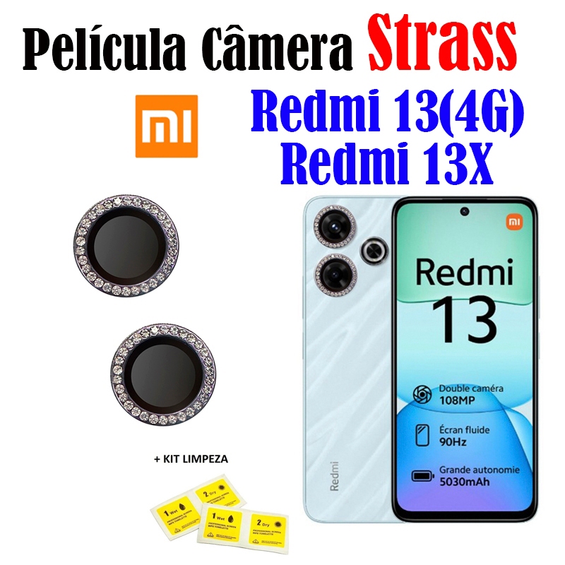 Kit (2 PCs)Película Câmera Diamonte REDMI 13 (4G)/Redmi 13X Protetor Da Lente