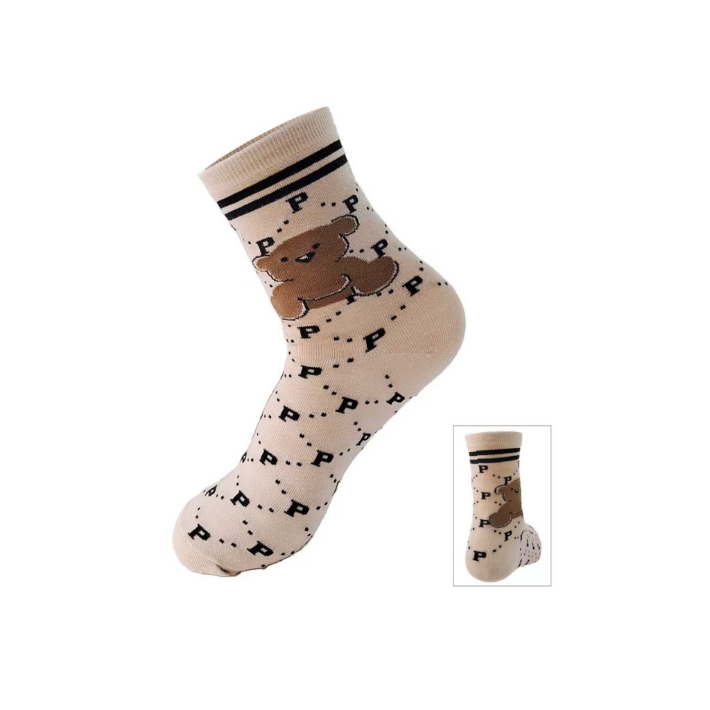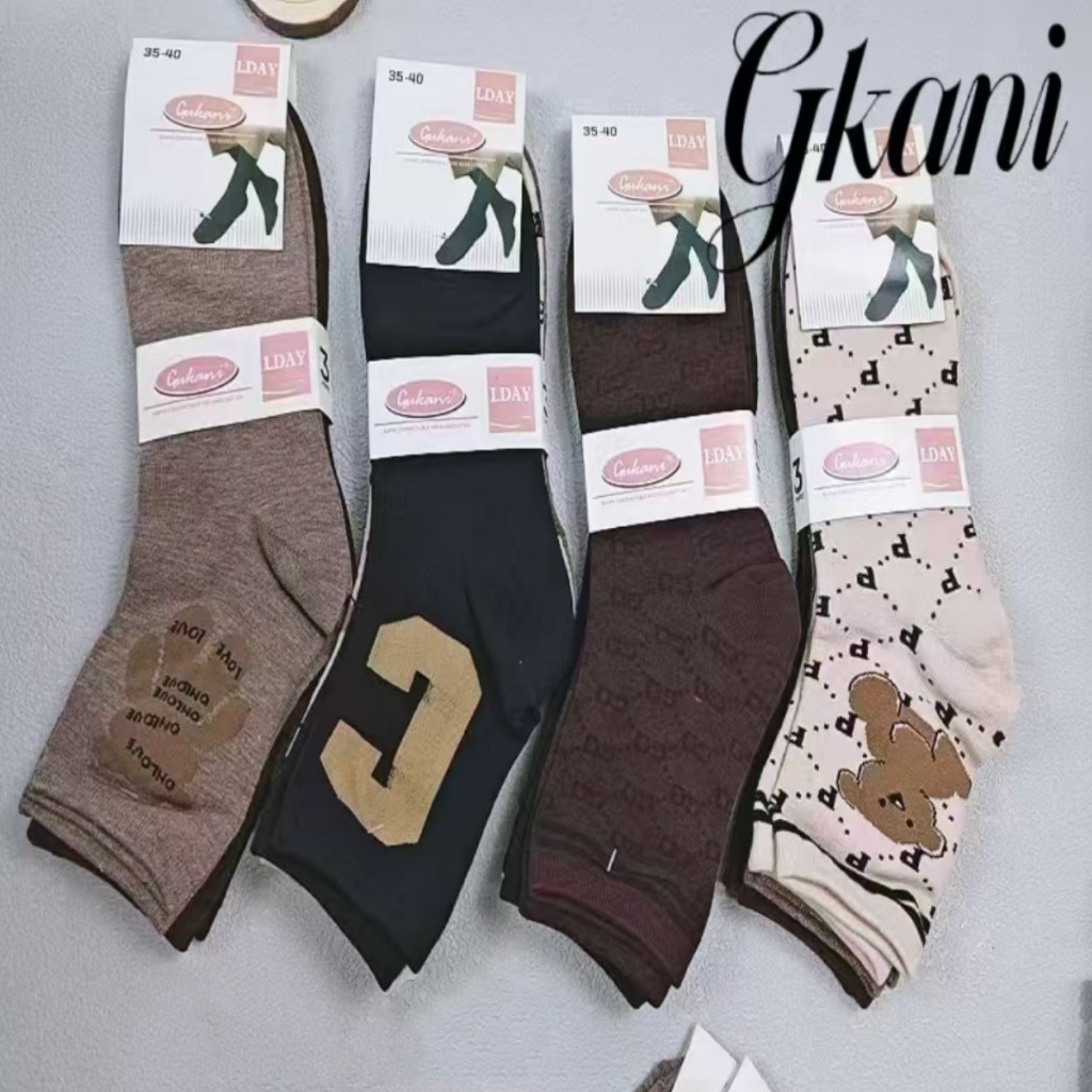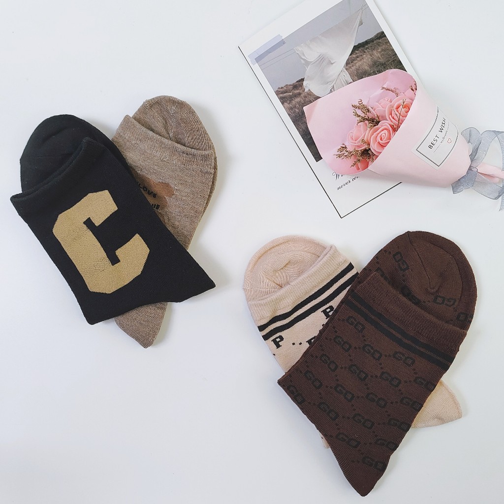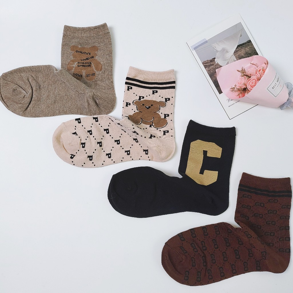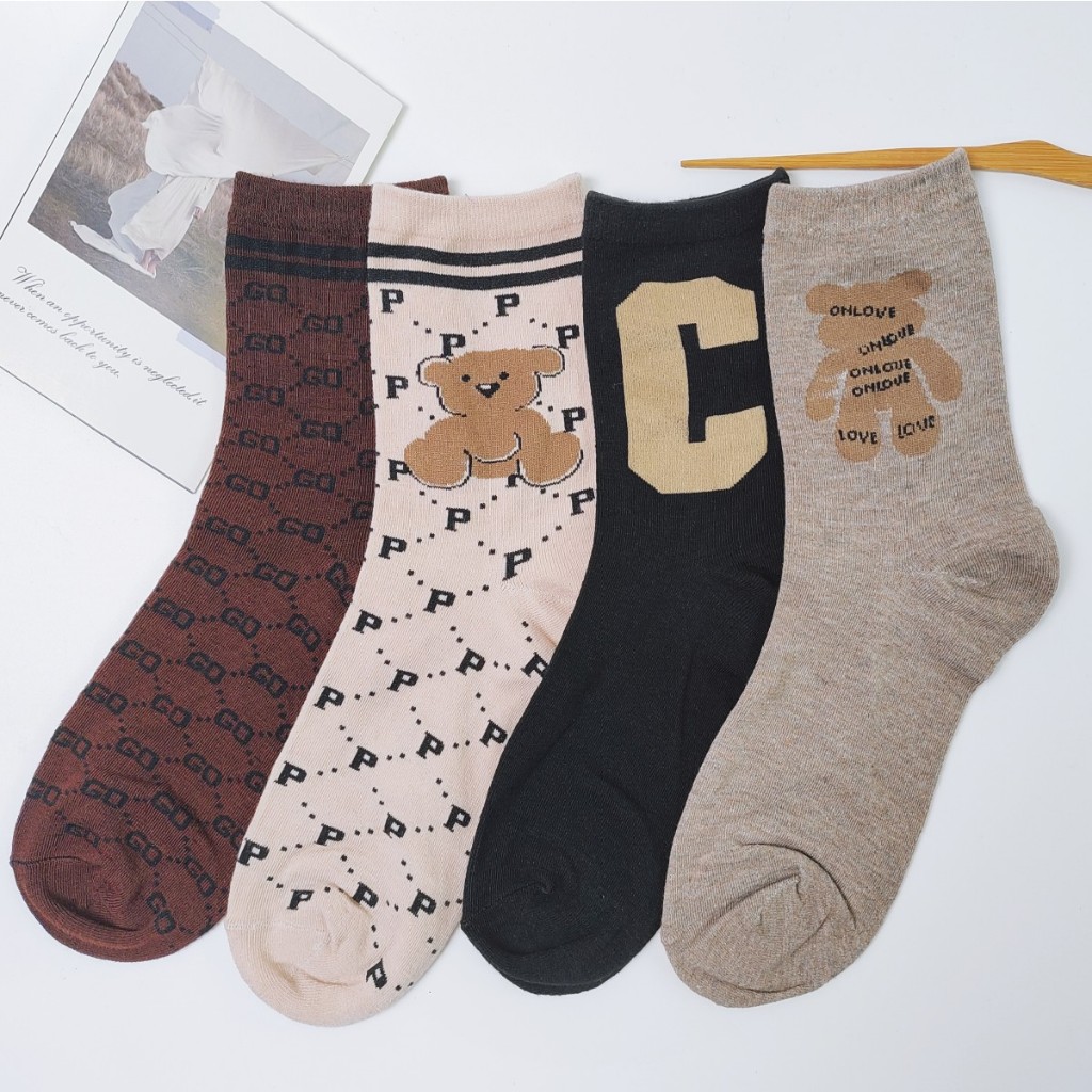 12 pares de meias femininas de cano médio com desenhos de letras