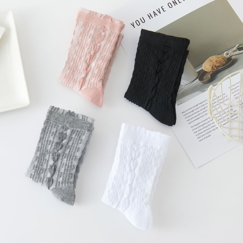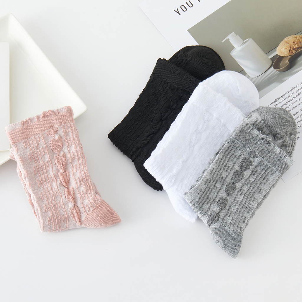 KIT COM 12 PARES DE MEIAS FEMININAS TRABALHADAS COM BORDADO DE CORAÇÃO 35-40 COLORIDO