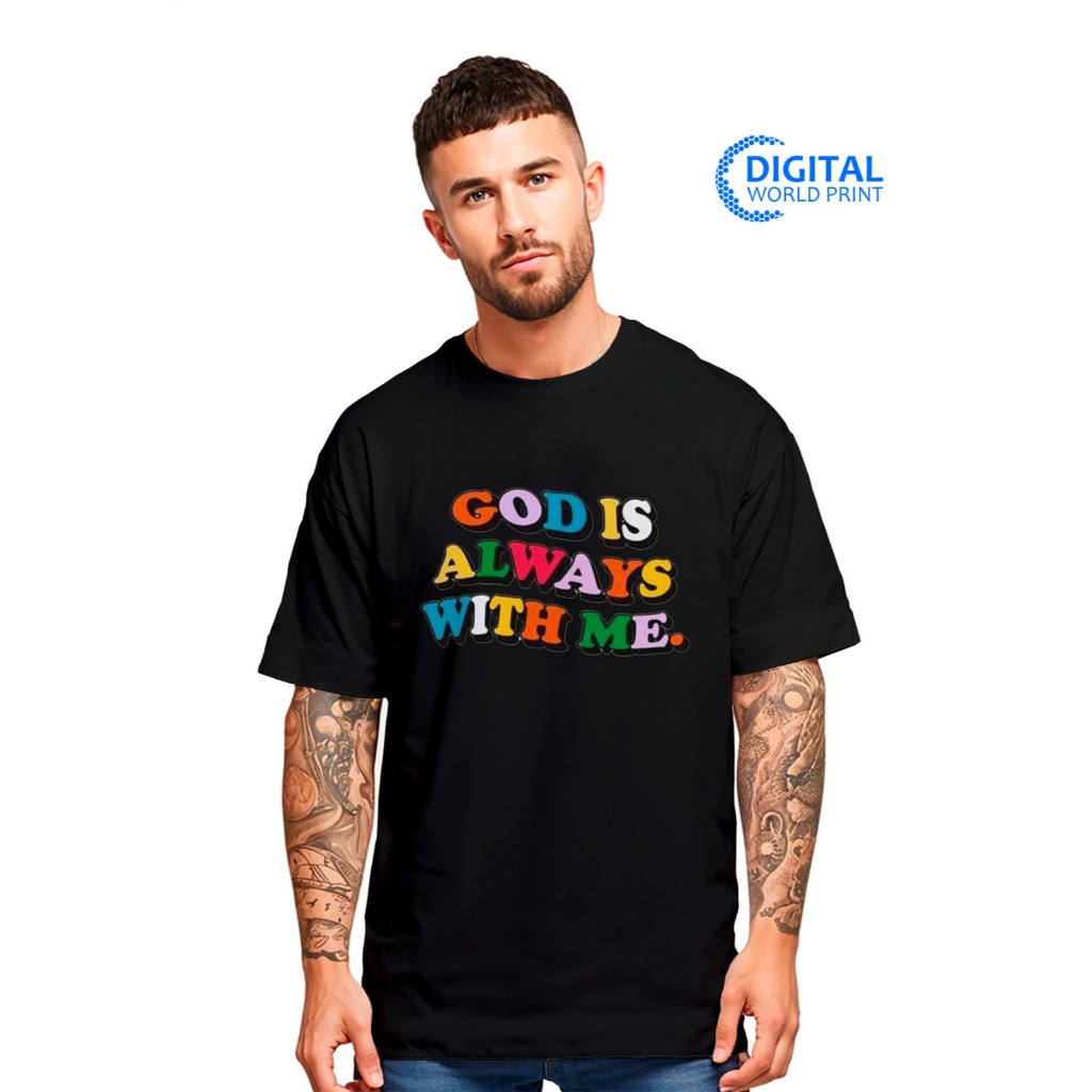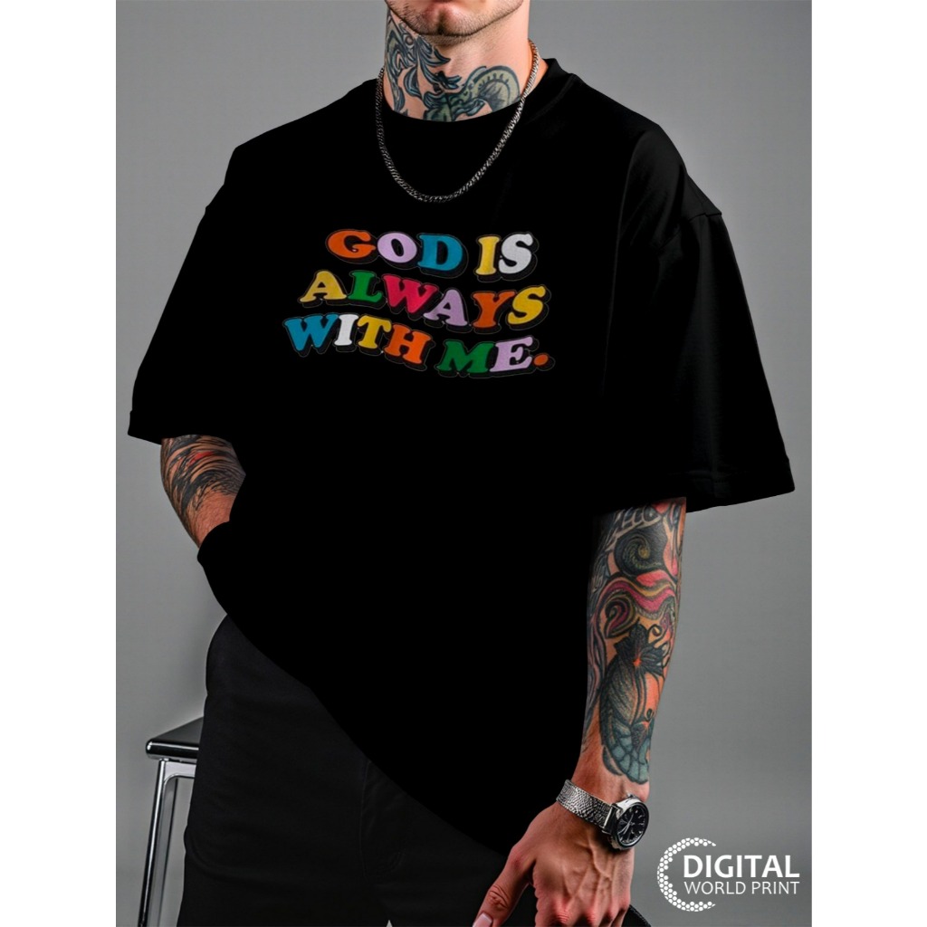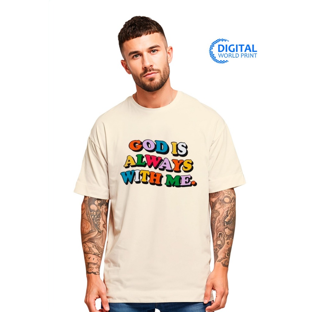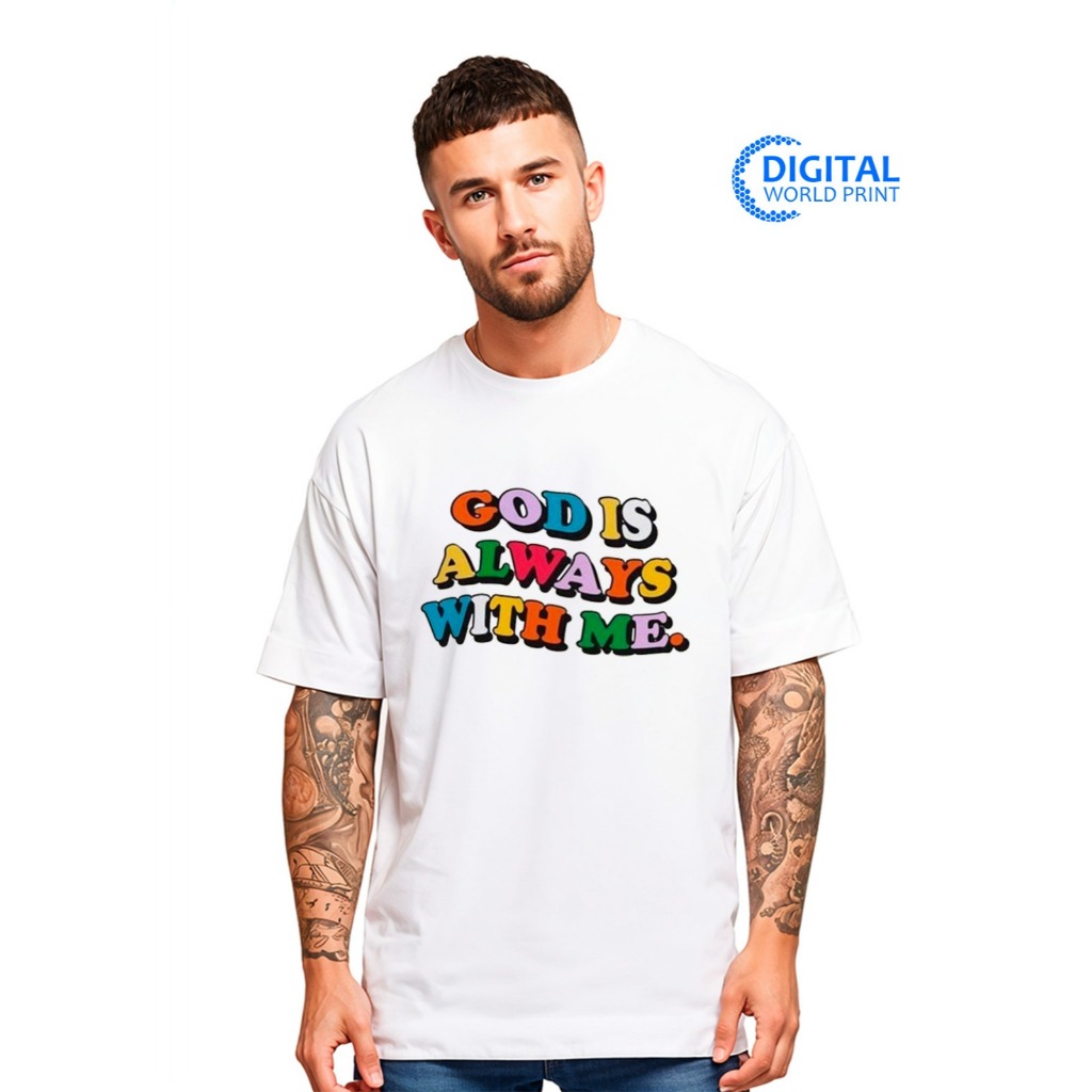 Camiseta Oversized Streetwear Premium God Is Always With Me Deus Sempre Comigo Dtf Ref3226