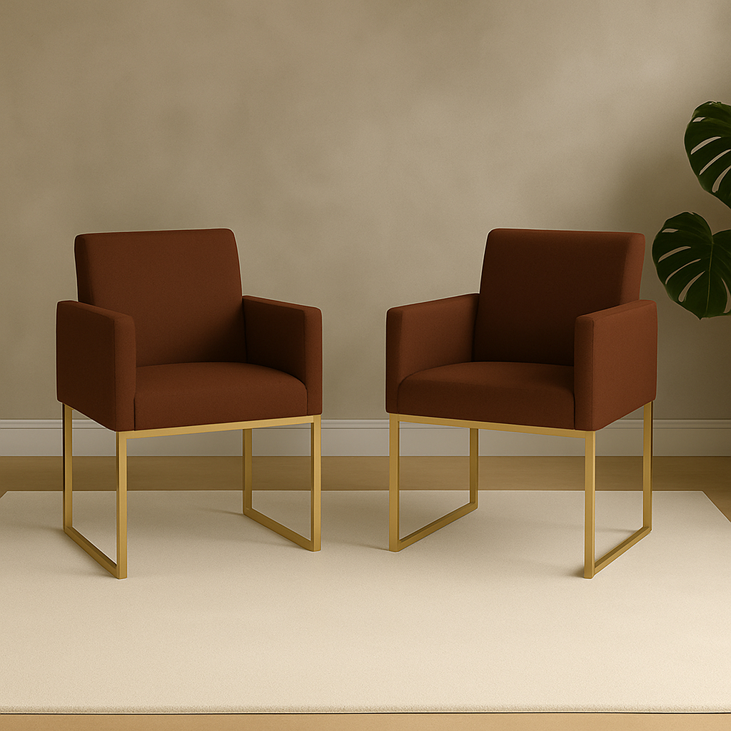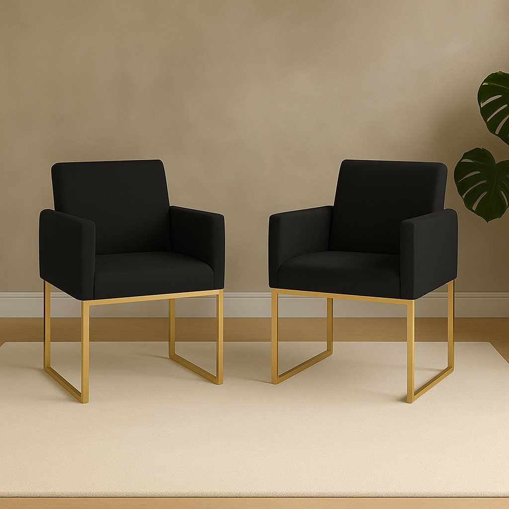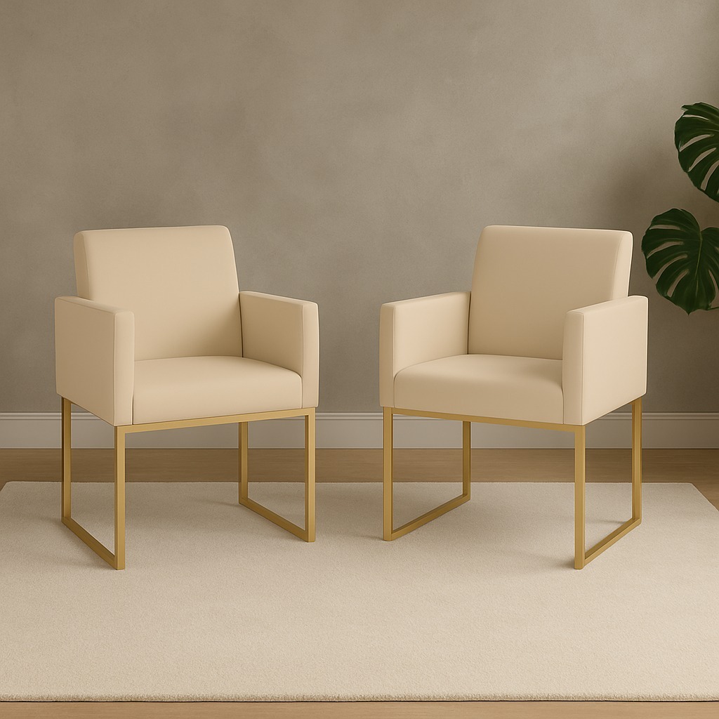 Kit 02 Poltronas Clínica Courino 3 Cores- Base Ferro Dourado