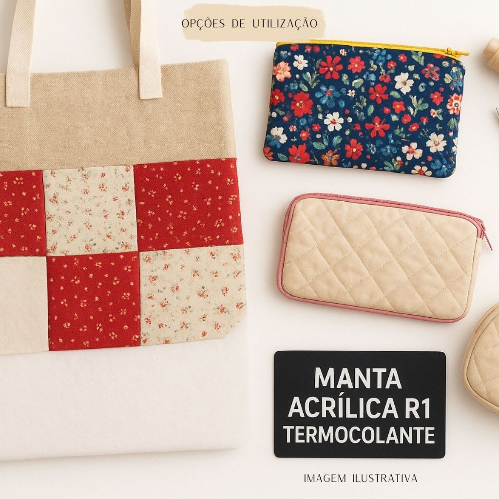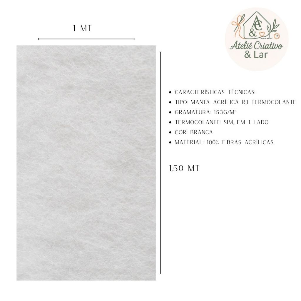 Manta Acrílica R1 Termocolante de 1 Lado 153g/m² 1x1,50m Para Patchwork, Costura e Artesanato
