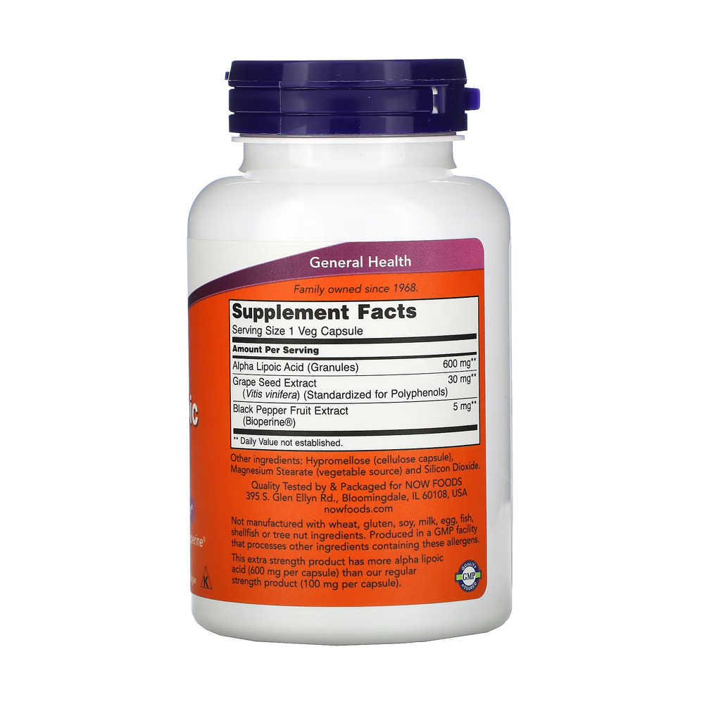 Ácido Alfa Lipóico 600mg Now Foods 120 Caps + Porta Cápsulas