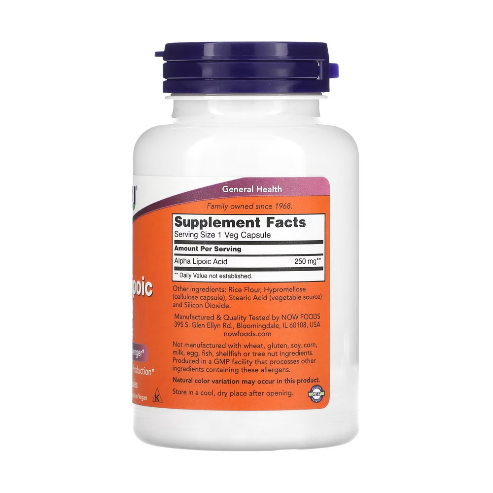 Ácido Alfa Lipóico 250mg Now Foods 120Cápsulas Importado