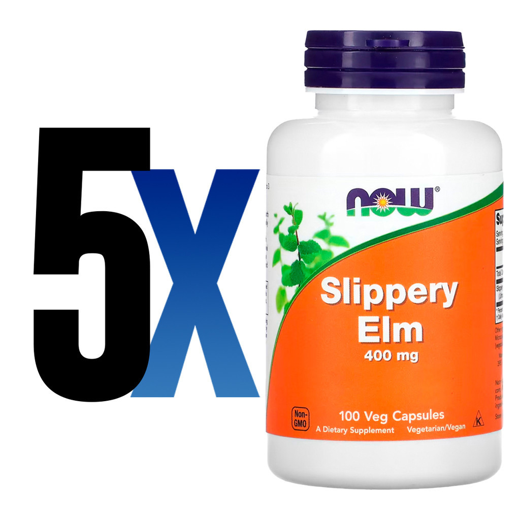 Kit 5x Ulmus Rubra 400mg Now Foods Slippery Elm 100 Veg Caps /Made in Usa