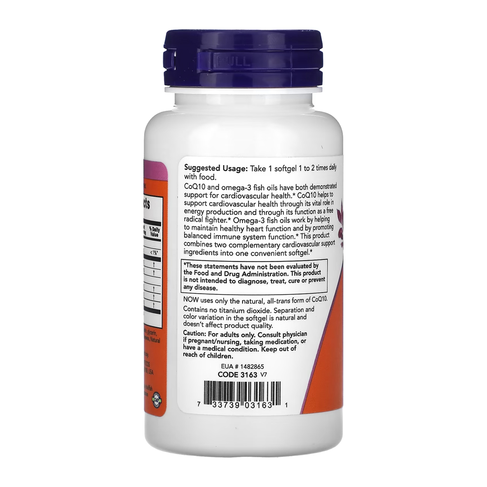 Kit 3x Coenzima CoQ10 60mg e Omega-3 Now Foods 60Soft Importado/Made in Usa