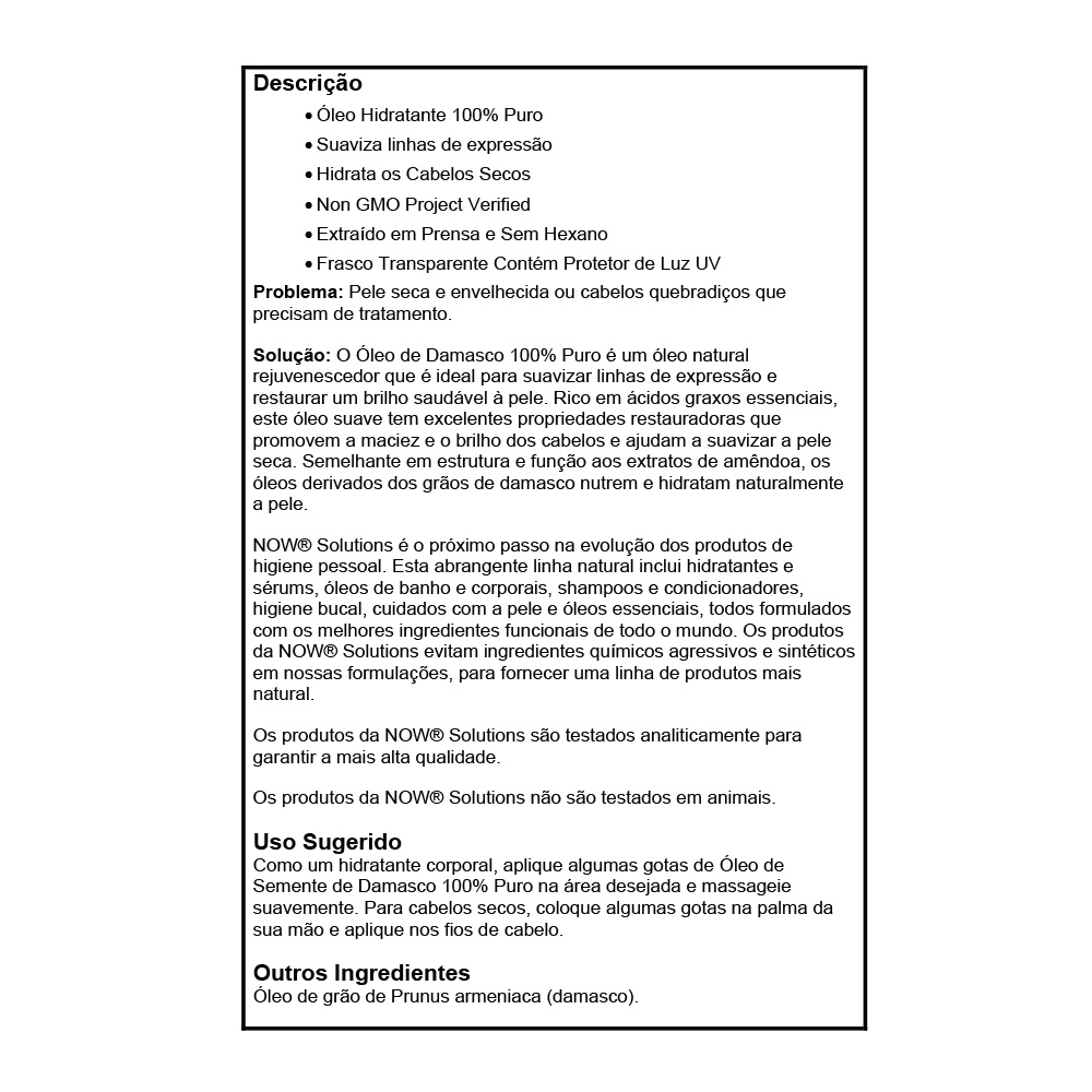 Óleo de Damasco Now Foods 100% Puro 118ml Importado