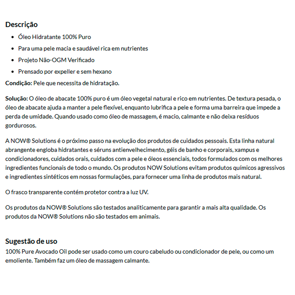 Kit 3x Óleo de Abacate Now Foods 118 ml Puro Importado/Made in Usa