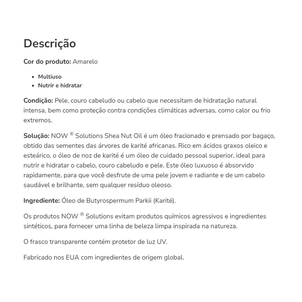 Kit 2x Óleo de Noz de Karité Now Foods 473 ml Importado/Made in Usa