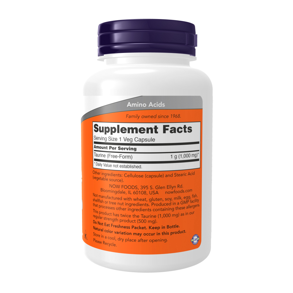 Kit 4x Taurina 1000mg Dupla Força Now Foods 100 Cáps Importado /Made in Usa