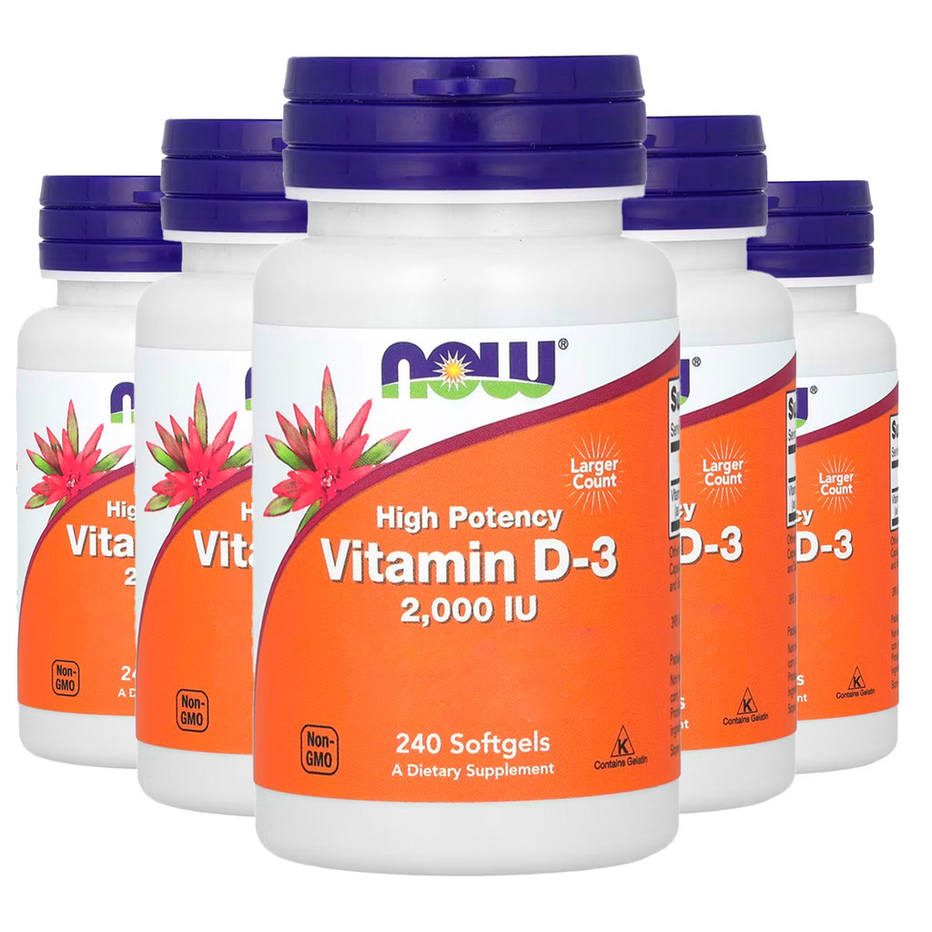 Kit 5x Vitamina D3 2000 IU Alta Potência Now Foods 240Softgls /Made in Usa