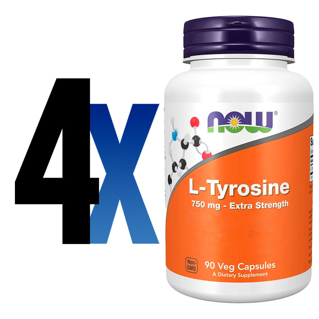Kit 4x L-tirosina 750mg Now Foods L-Tyrosine 90 Veg Caps /Made in Usa