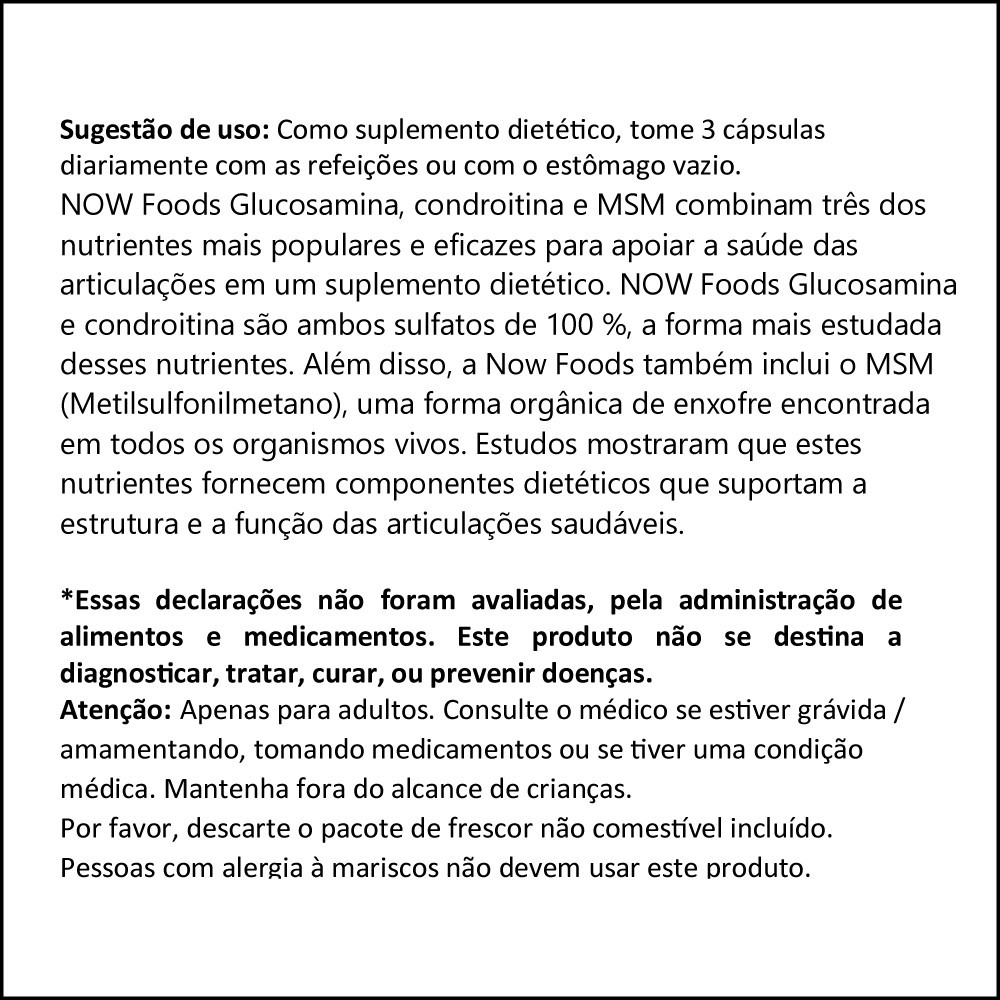 Now Foods Glucosamina Condroitina e MSM 90Caps Veg