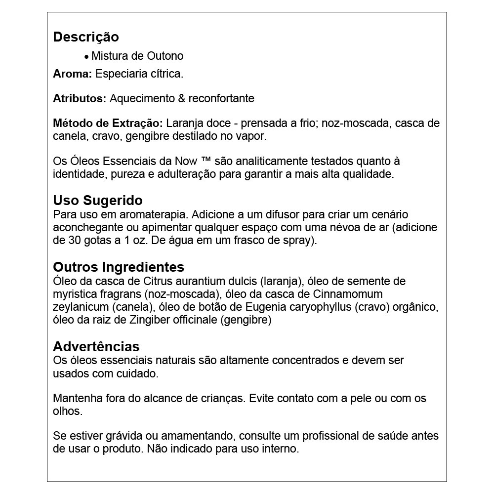Mistura de Óleo Spice Cider Now Foods 30 ml Importado