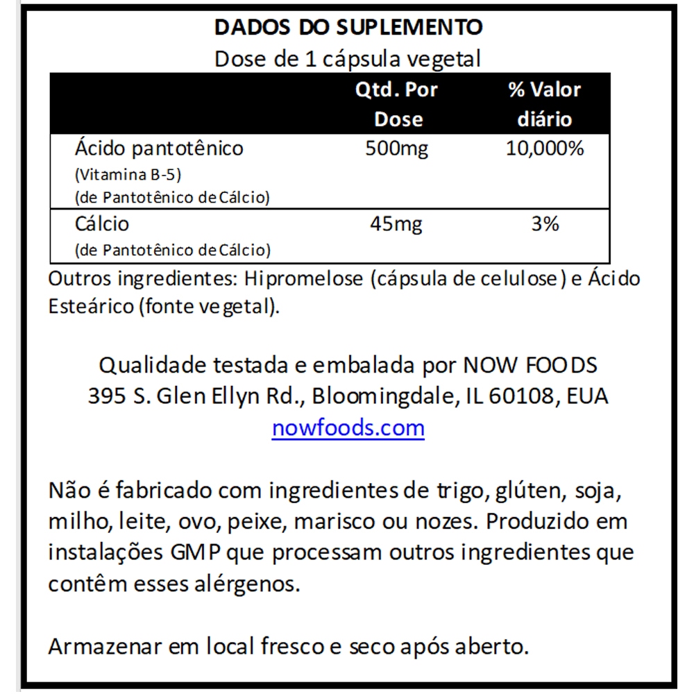 Ácido Pantotênico Now Foods Vit. Complexo B 100Cap Importado + Porta Cápsulas