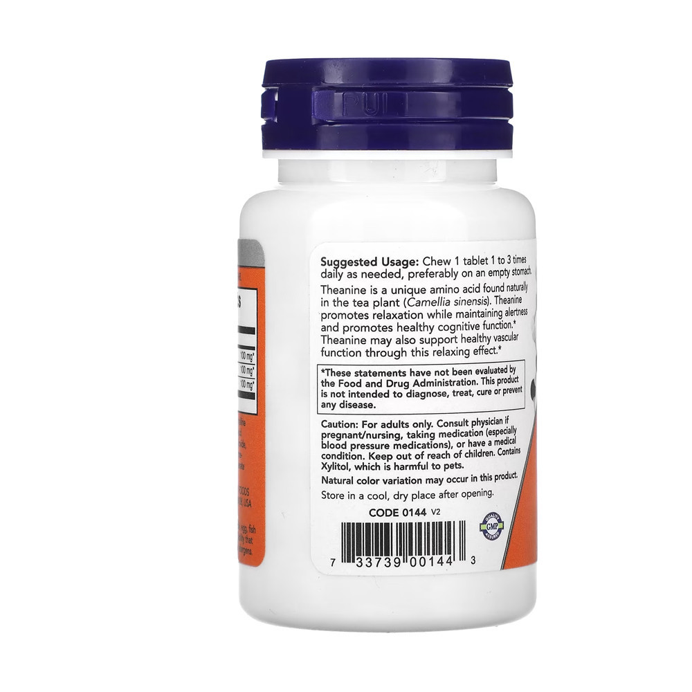 L-Teanina 100mg Now Foods 90 Chebls Matigáveis Importado
