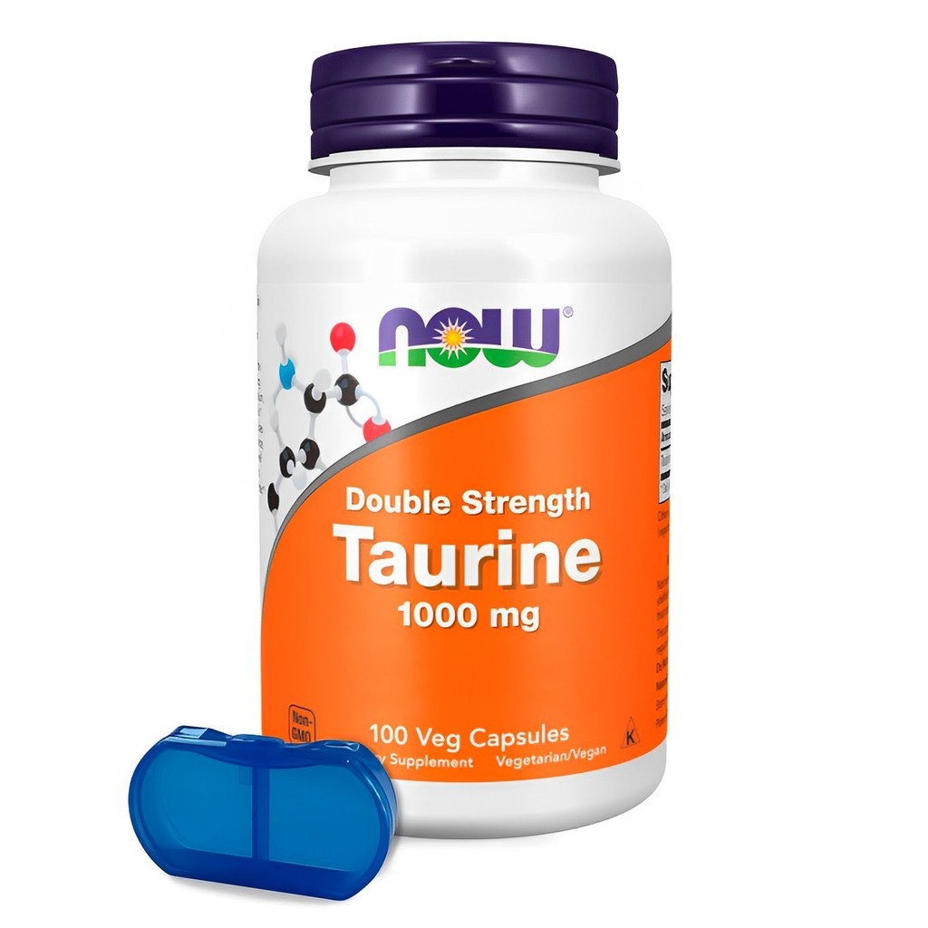 Taurina 1000mg Dupla Força Now Foods 100Cáp + Porta Cápsulas
