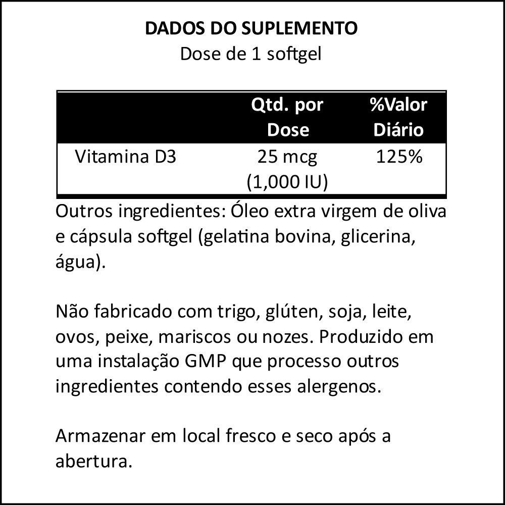 Vitamina D3 1000 IU Alta Potência Now Foods 180Softgls