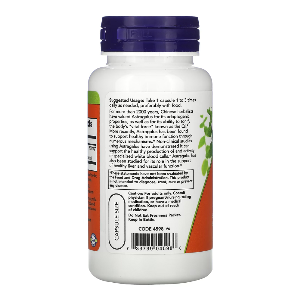 Kit 2x Astragalus Erva Chinesa 500mg Now Foods 90Cáps Importado/Made in Usa