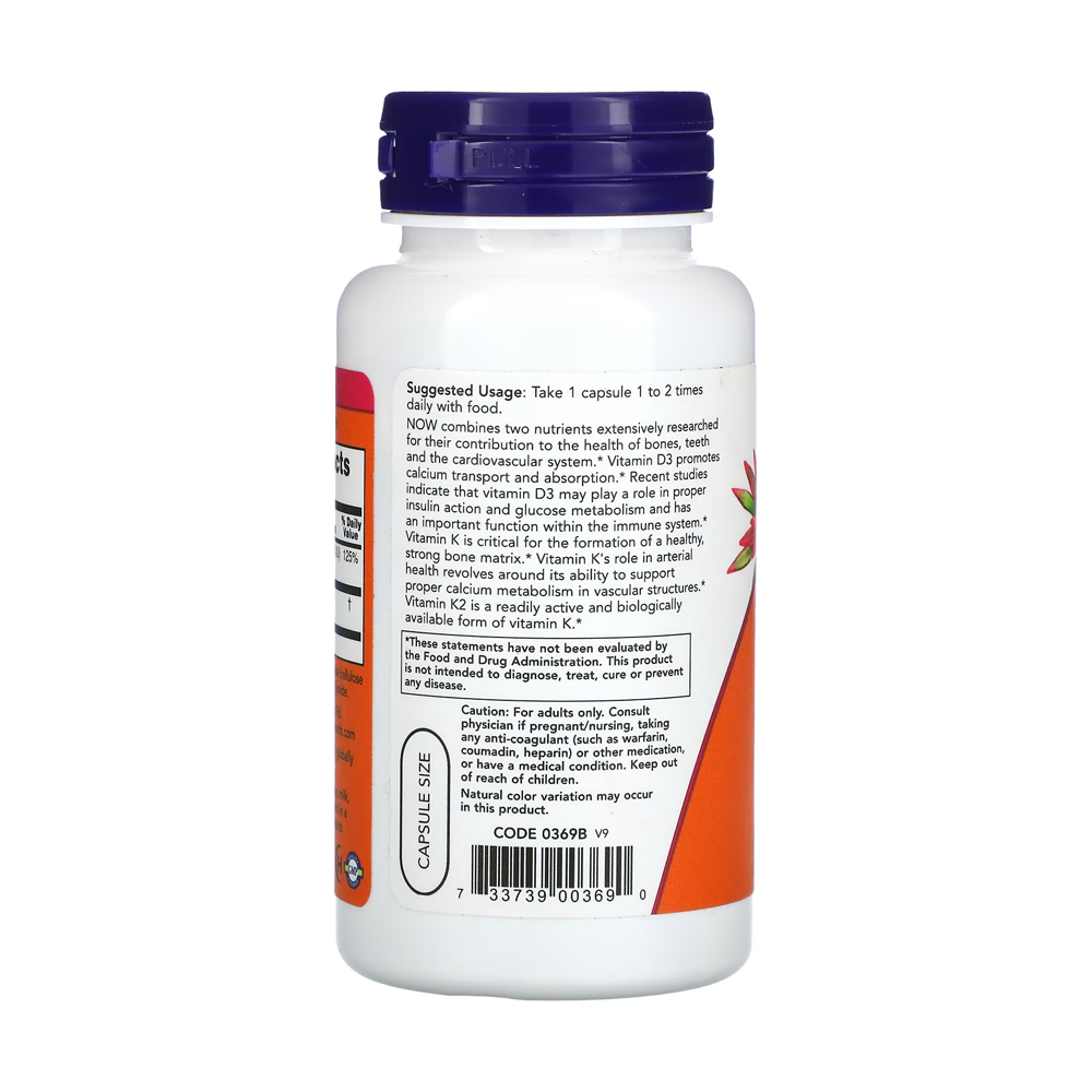 Kit 2x Vitamina D3 25mg com VIT K2 45mg Now Foods 120 Cap Importado/Made in Usa