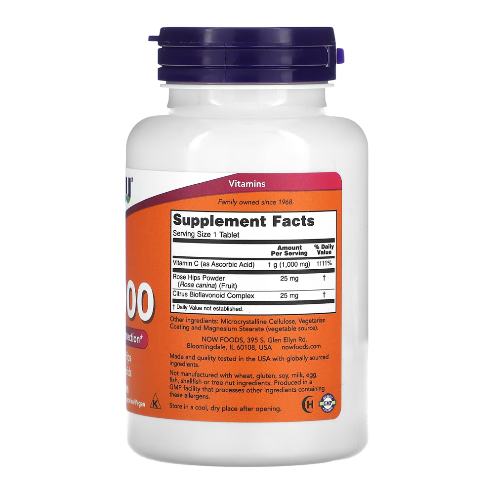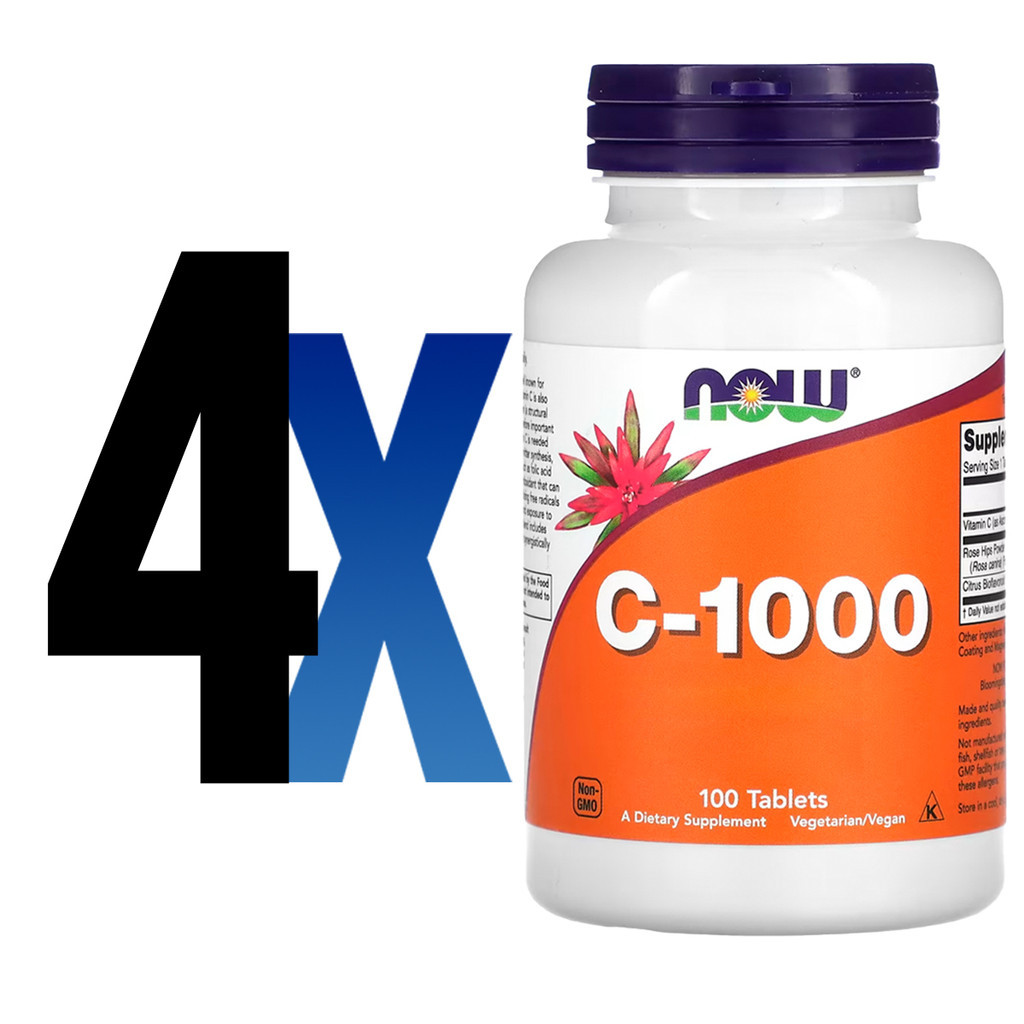 Kit 4x Vitamina C 1000mg+R. Mosqueta Now Foods 100Tab Importado /Made in Usa