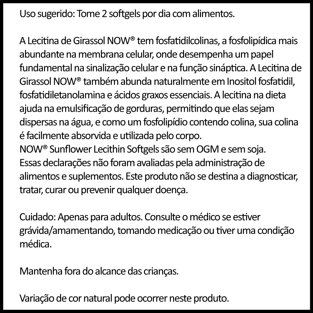 Kit 2x Lecitina de Girassol 1200mg NowFoods 100 Softgls Importado/Made in Usa