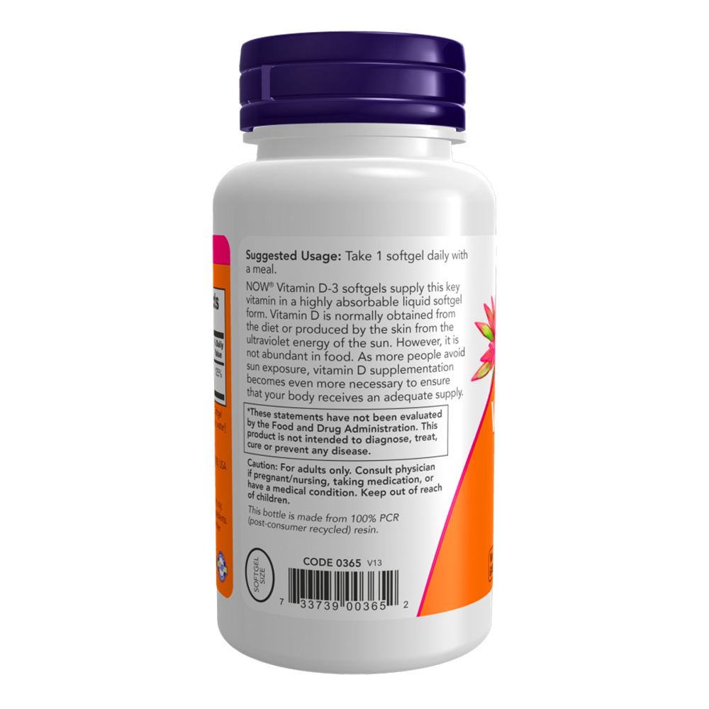 Kit 3x Vitamina D3 1000 IU Alta Potência Now Foods 180Softgls /Made in Usa