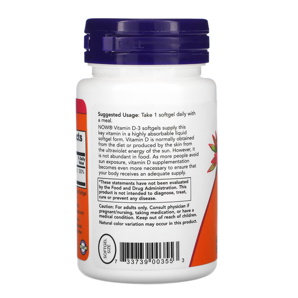 Vitamina D-3 2000IU Now Foods 30 Softgels + Porta Cápsulas