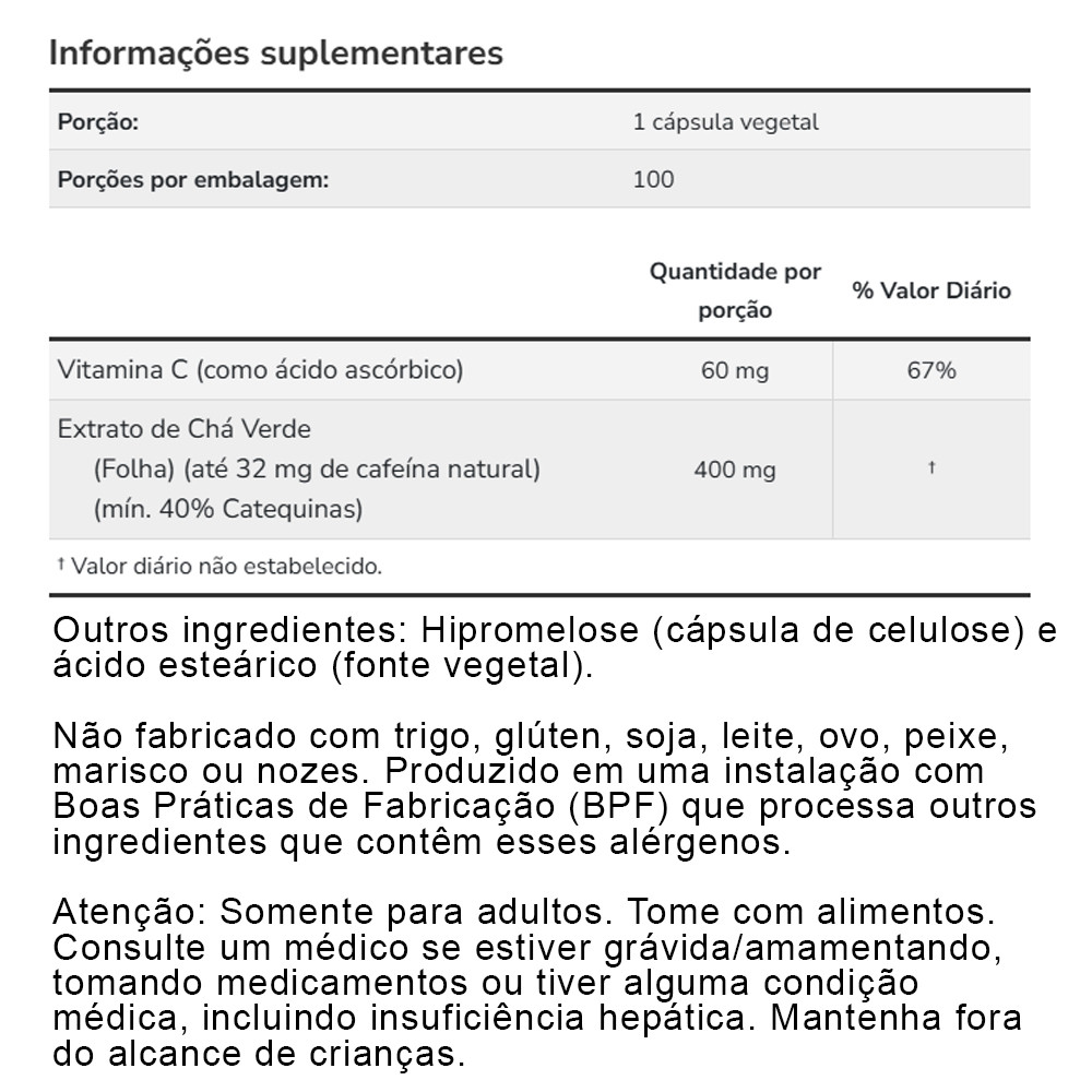 Extrato Chá Verde 400mg Now Foods 100 Cápsulas Importado