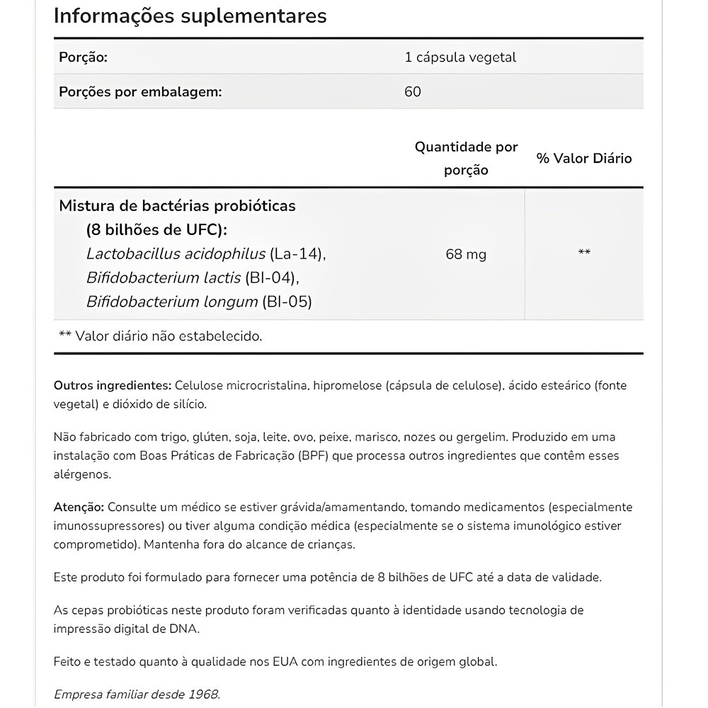 Probiótico 8BI Now Foods Acidoph/Bifius 120Cap Importado