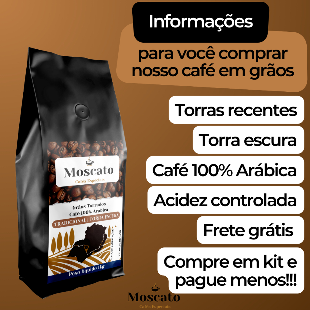 Café Torrado em Grãos Torra Escura Arábica Gourmet Tradicional 1Kg Café Moscato