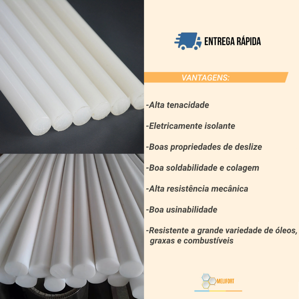 Tarugo De Nylon Pa6 16mm X 1000mm Bastão Poliamida Natural