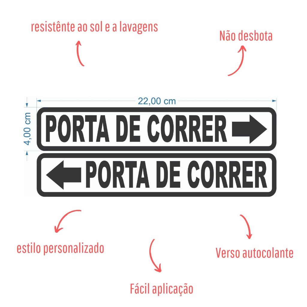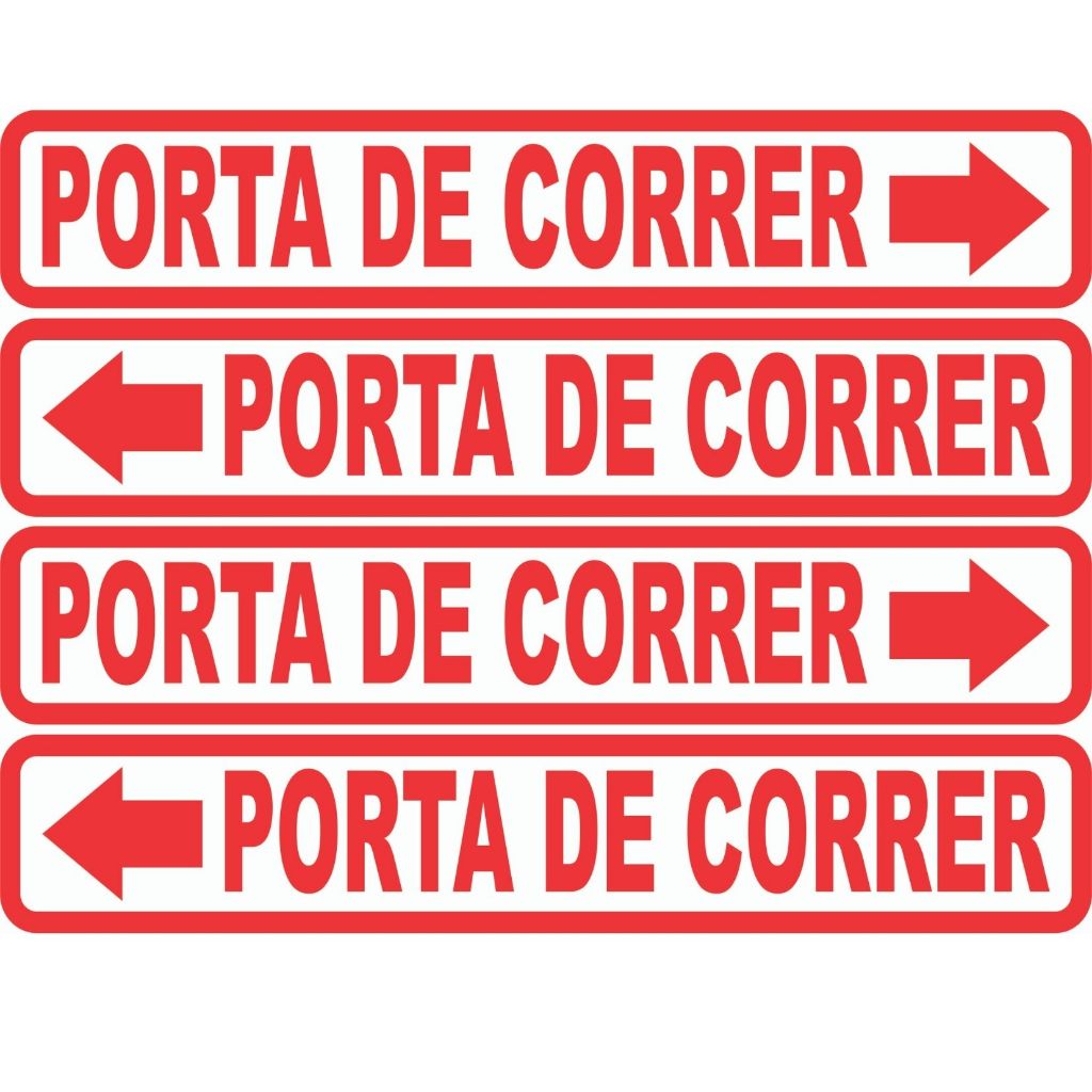 Kit com 4 Adesivos Porta de correr Sinalização para Porta Impresso em Fundo Branco Vinil Premium