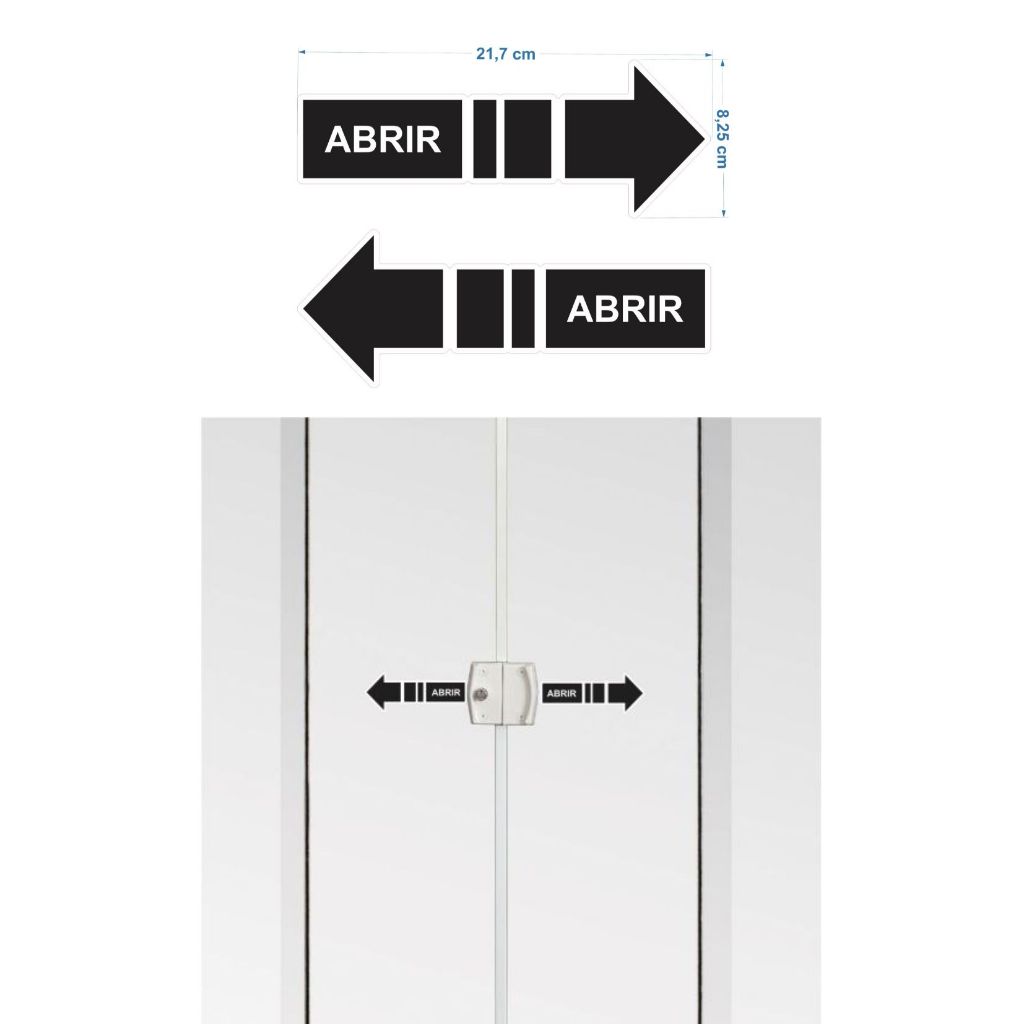 Kit com 2 Adesivos Porta de correr Abrir Sinalização para porta impresso em fundo branco