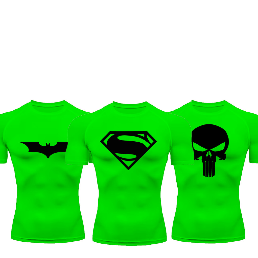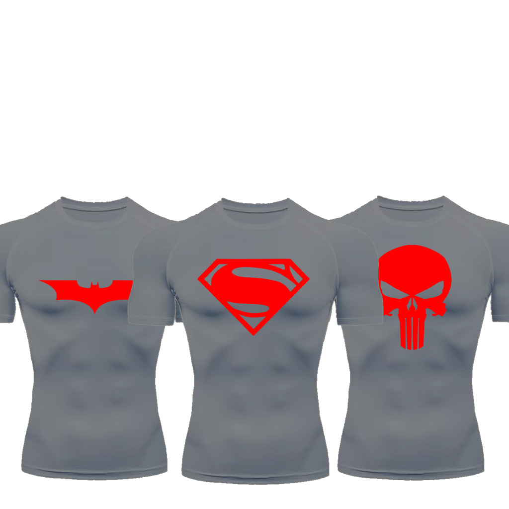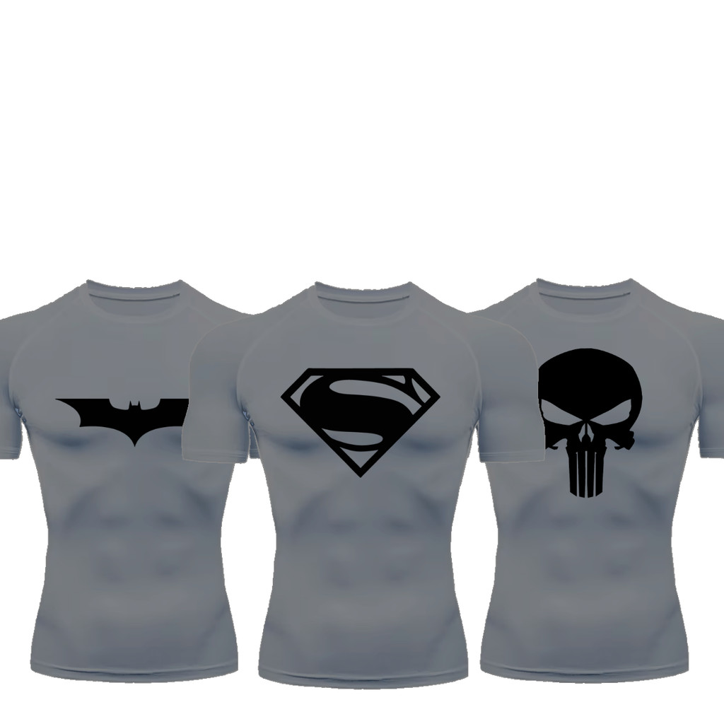 Kit 3 Camisetas Compressão Proteção Uv Estampada Tecido Gelado Segunda Pele Manga Curta Batman Super Homem Justiceiro