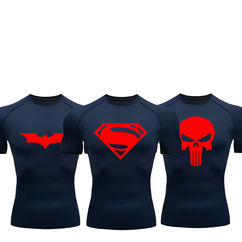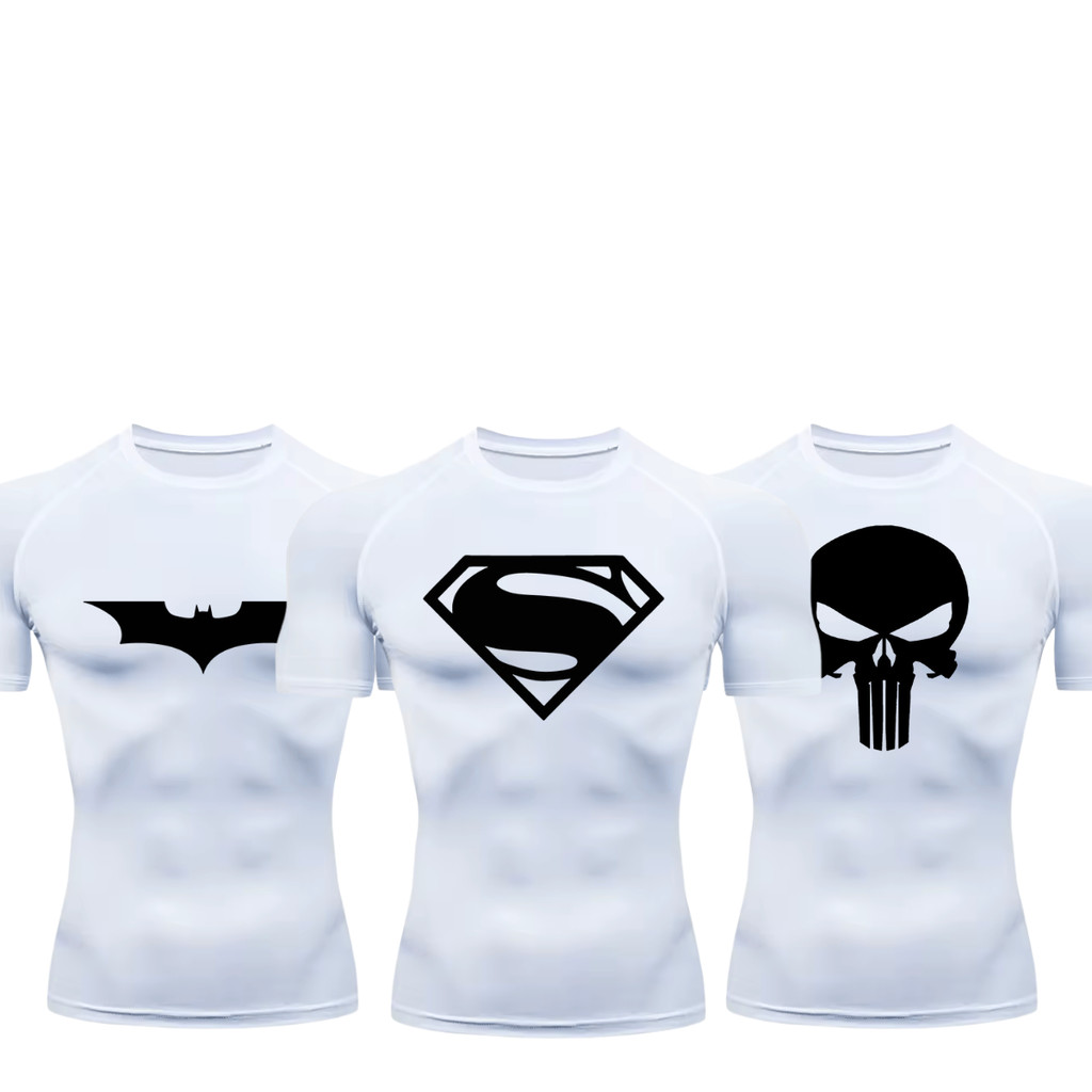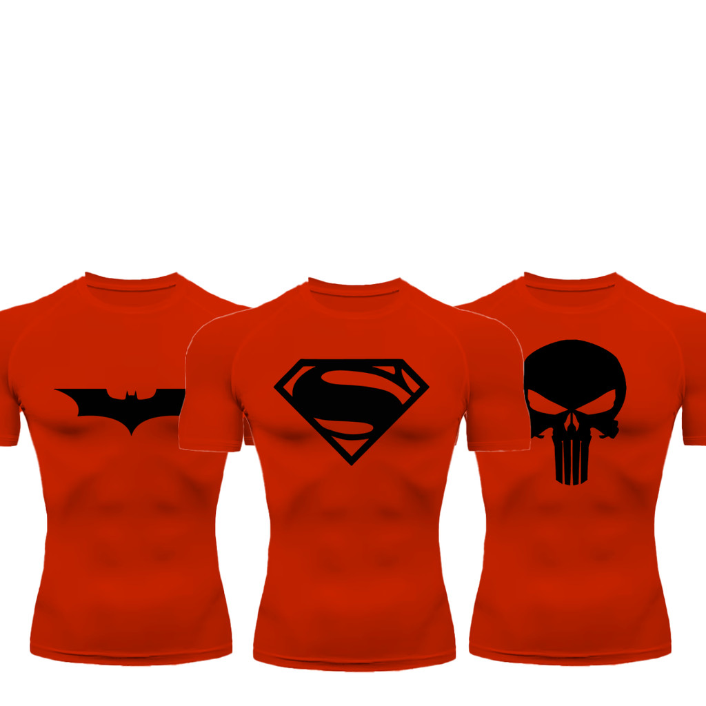 Kit 3 Camisetas Compressão Proteção Uv Estampada Tecido Gelado Segunda Pele Manga Curta Batman Super Homem Justiceiro