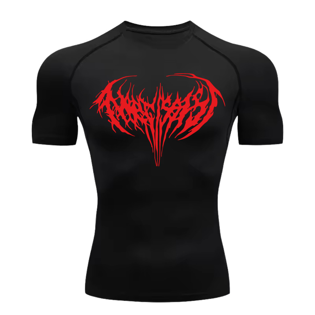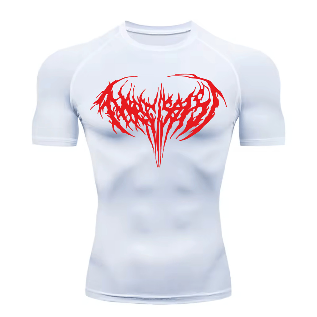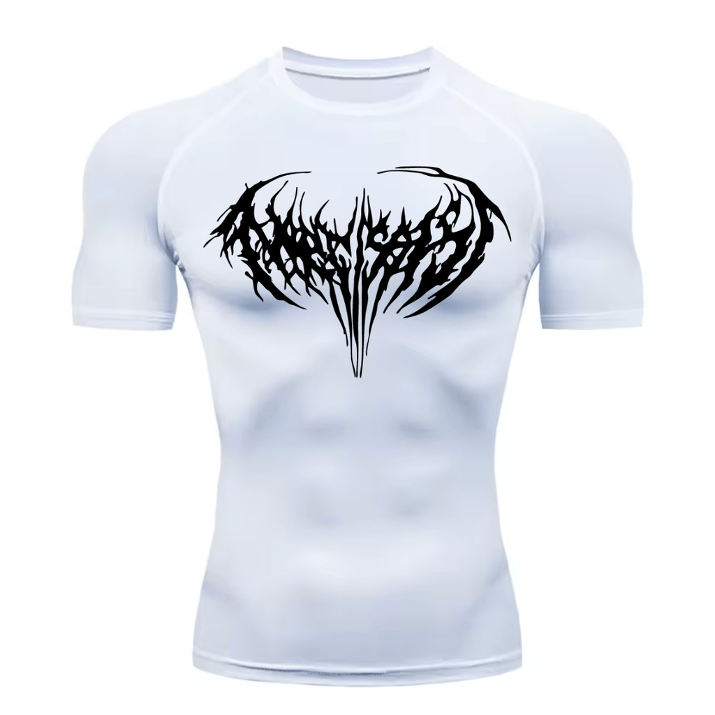 Camiseta Compressão Proteção Uv 50+ Estampada Na Frente Tecido Gelado Segunda Pele Manga Curta Cyber Tribal Narcissist