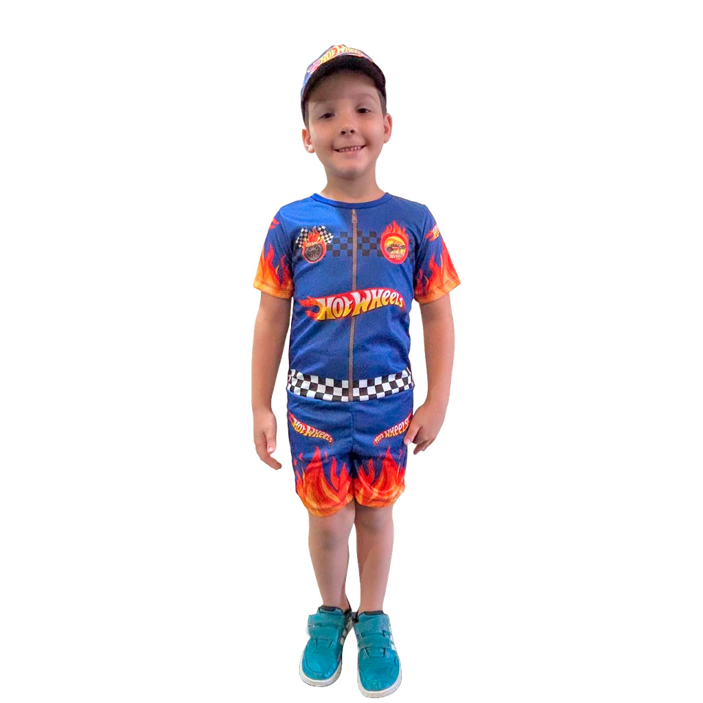 Fantasia Roupa Infantil Hot Wheels Com Boné Carros Piloto Curto Formula 1