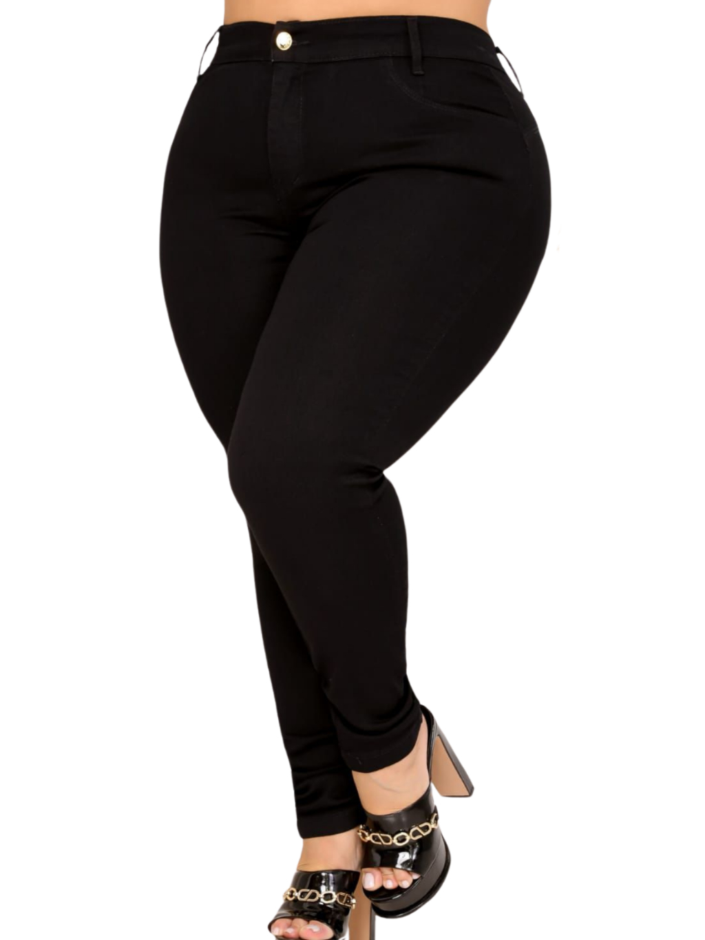 Calça Jeans Feminina Plus Size Preta 56 Ao 64 Lycra Cintura Alta Modeladora Levanta Bumbum Skinny