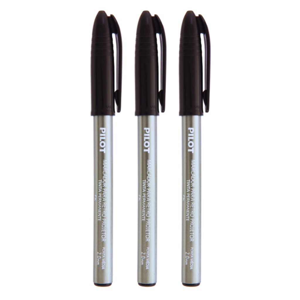 KIT 03 Canetas Pincel Marcador Permanente Ponta 2.0mm Pilot