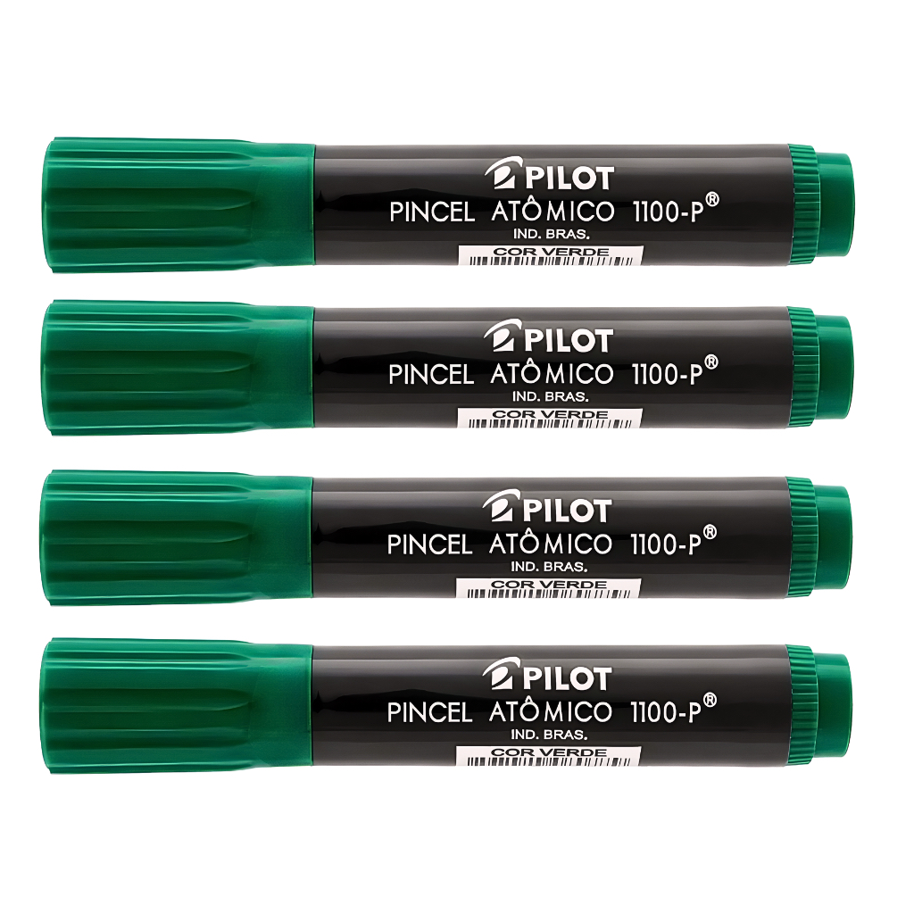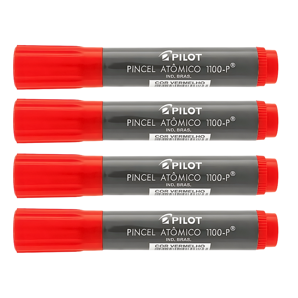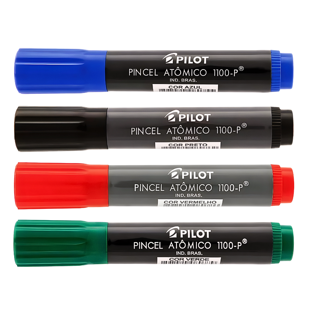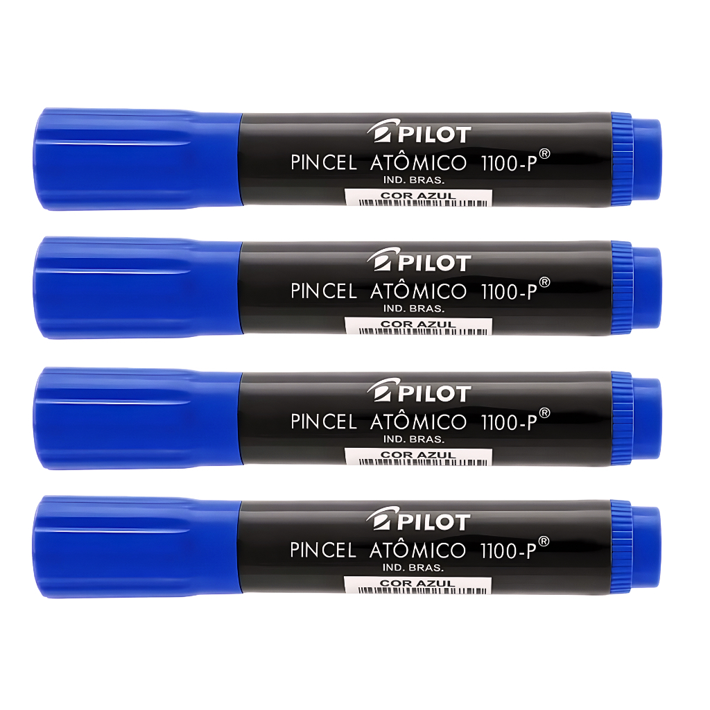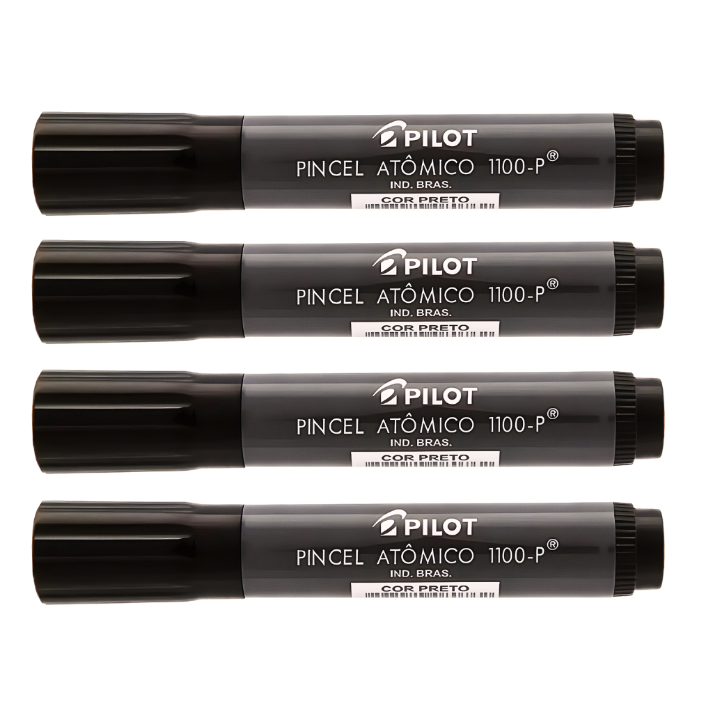 KIT 04 Marcadores Pincel Atômico 1100 Permanente Canetão Ponta Chanfrada Recarregável Pilot