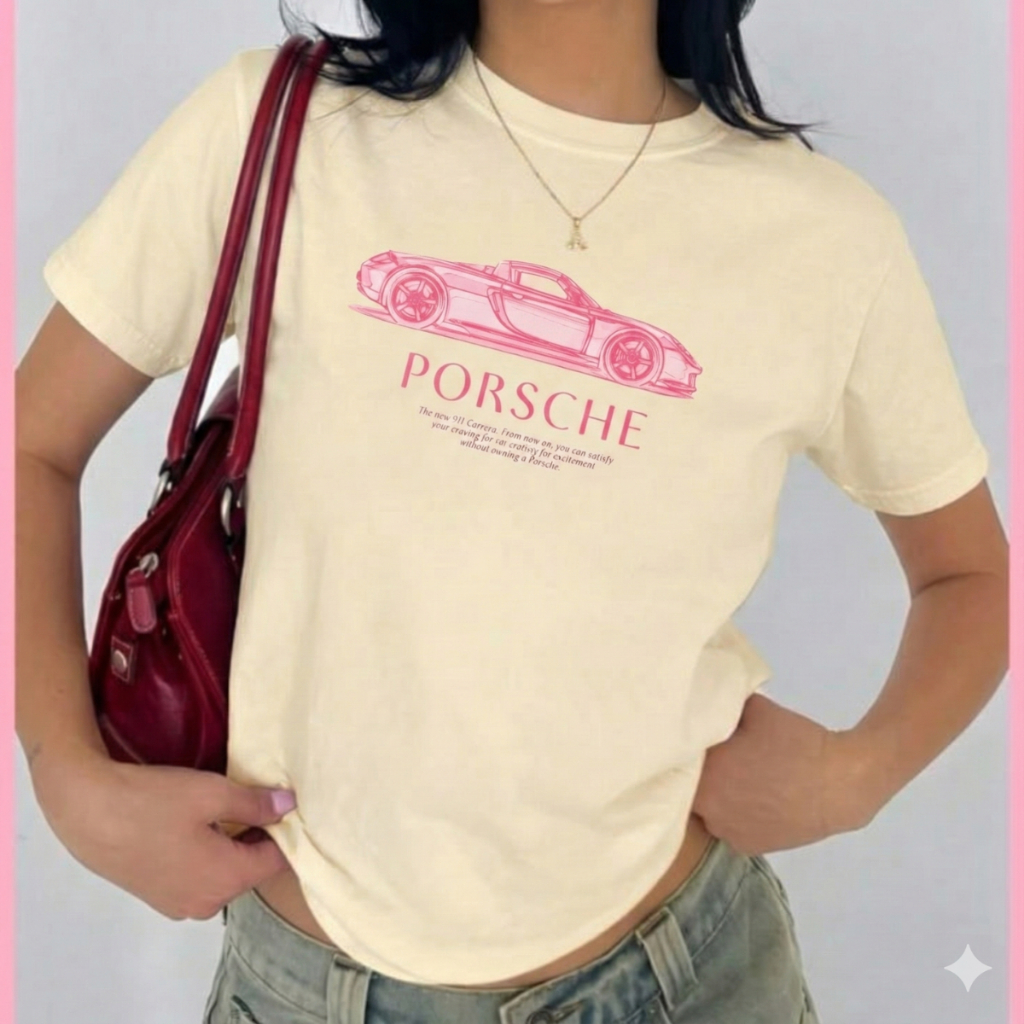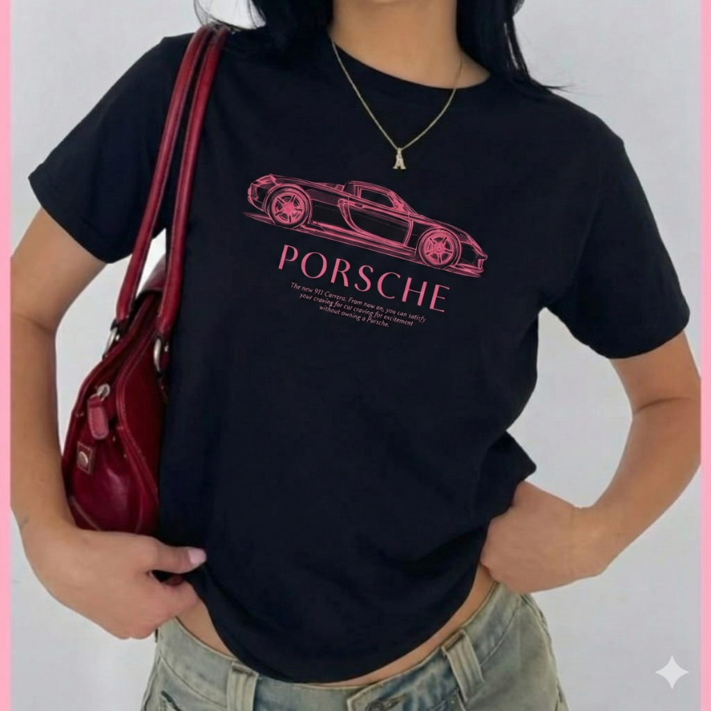 Camiseta Slim Feminina Estampa Carro Rosa T-shirt Premium Casual De Verão Summer Algodão Leve e Envio Imediato