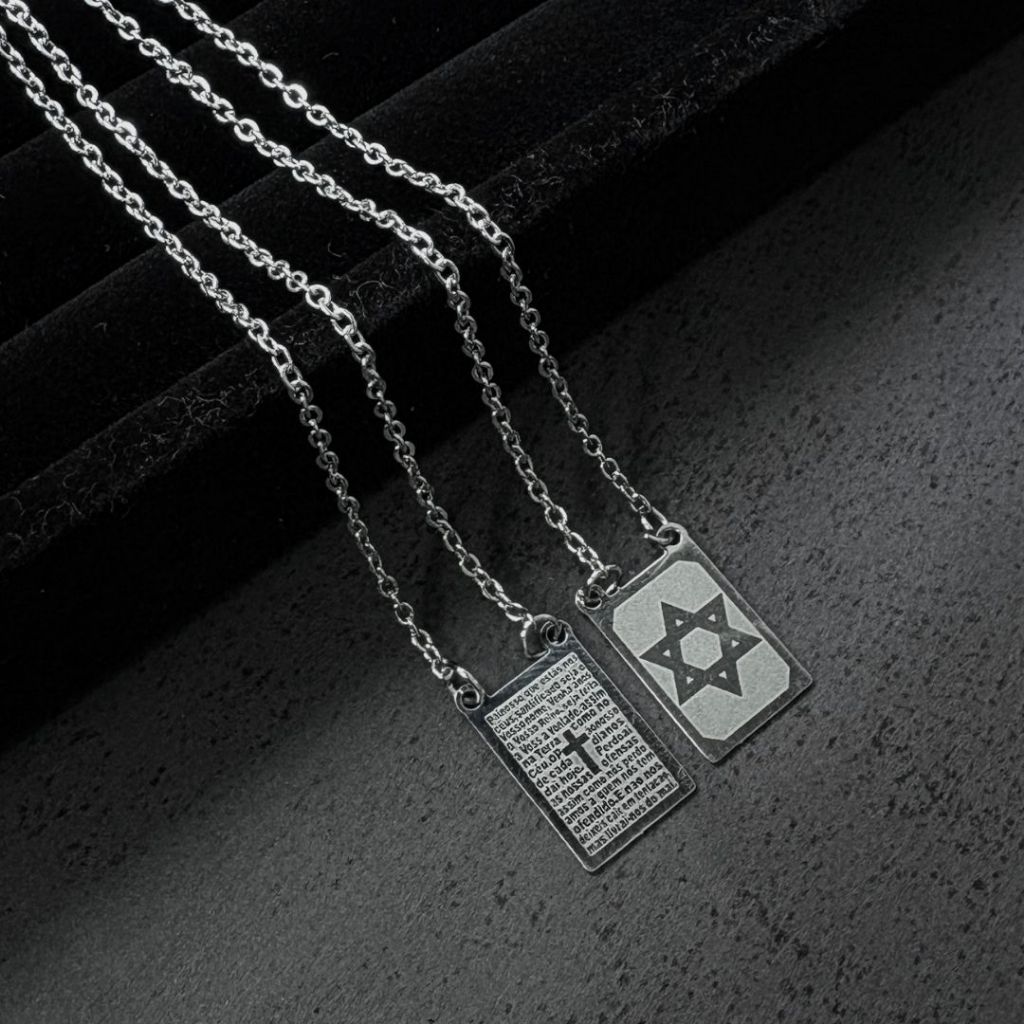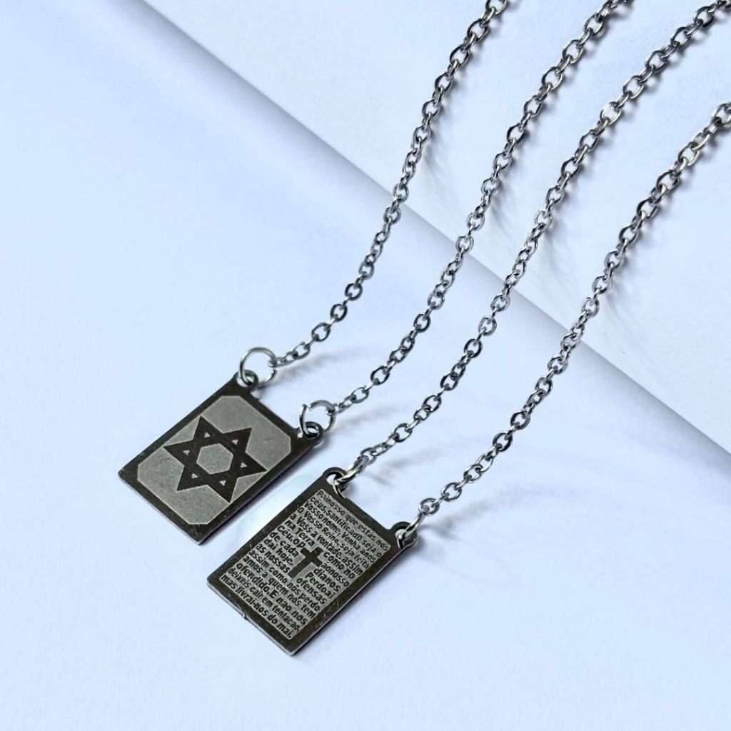 Colar Escapulário Estrela de Davi Aço Inox Inoxidável 316L Masculina Feminino