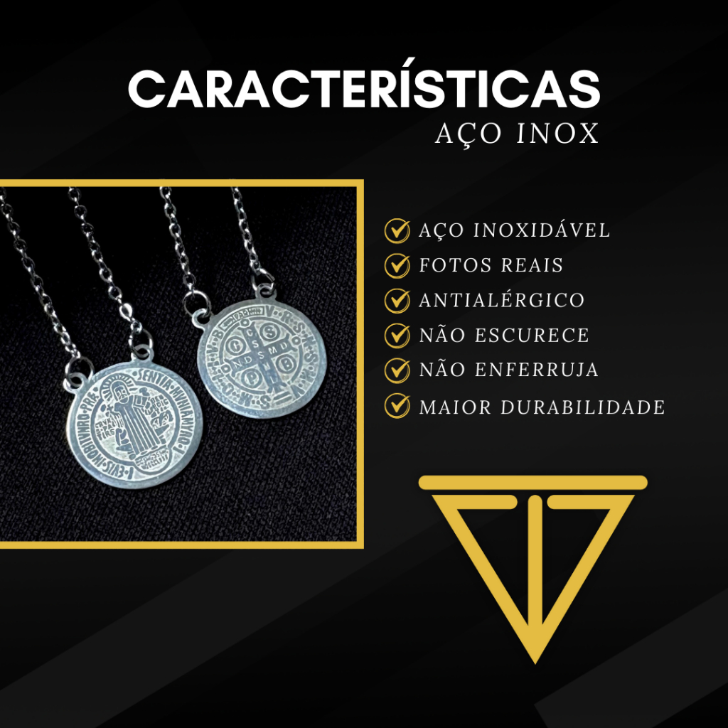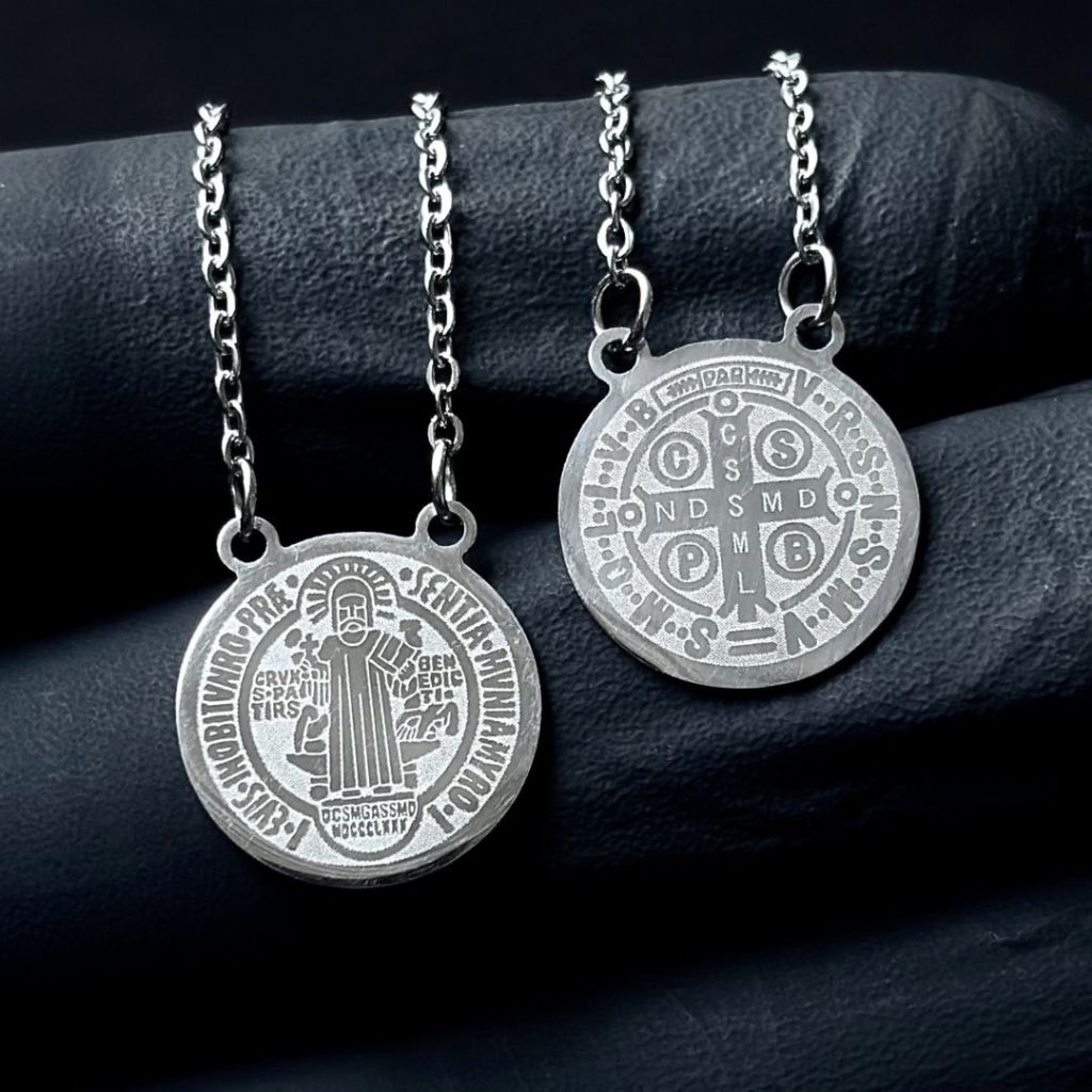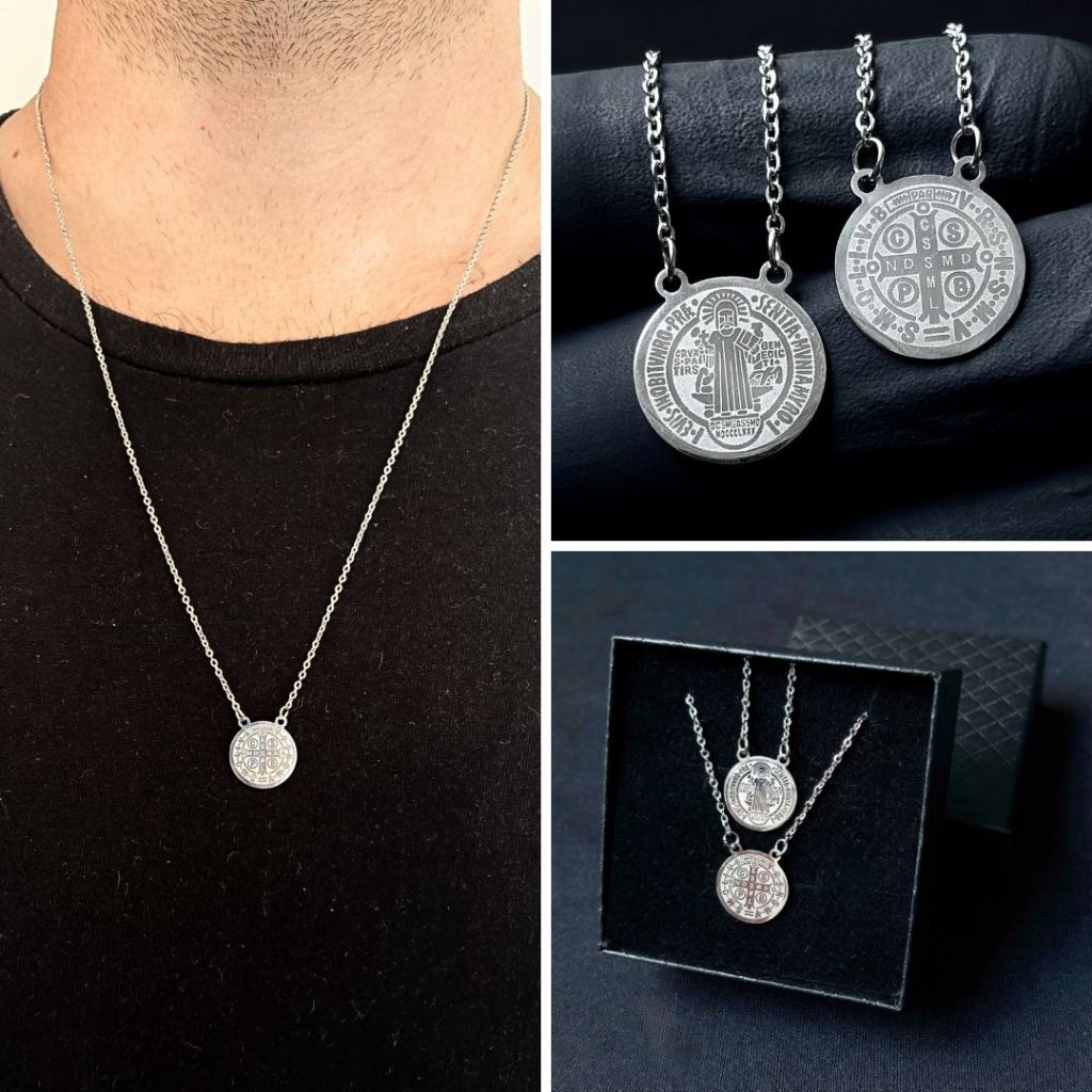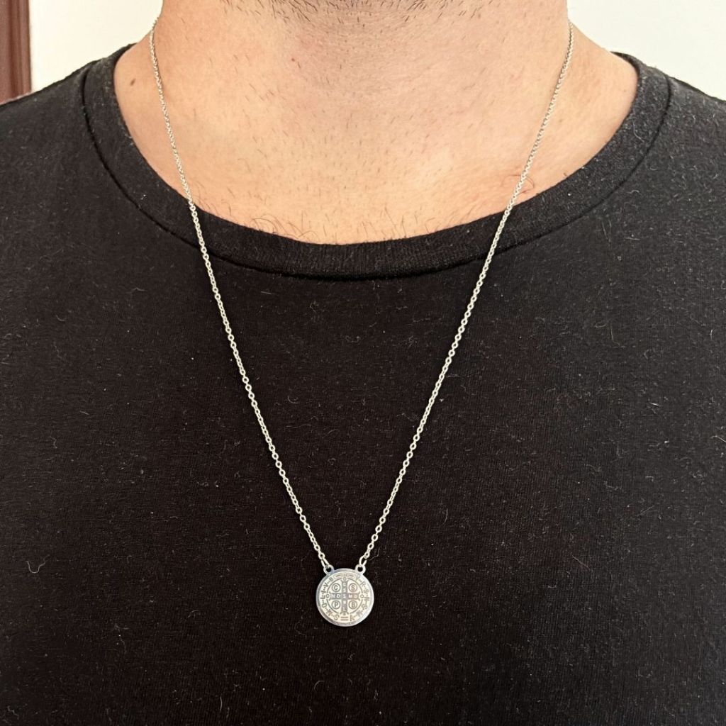 Colar Escapulário Aço Inox São Bento Inoxidável 316L Masculina Feminino