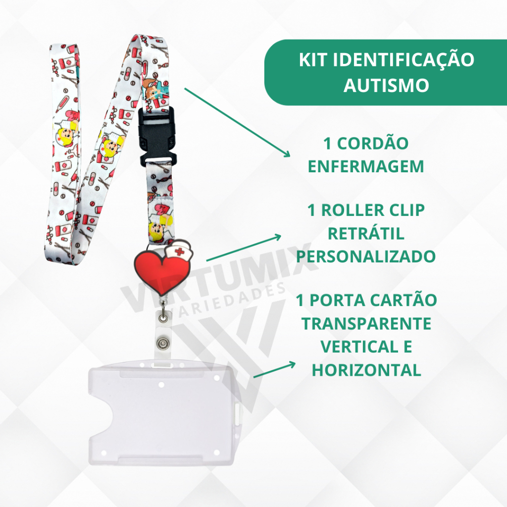 Cordão Enfermagem + Roller Retrátil Personalizado + Porta Crachá Transparente